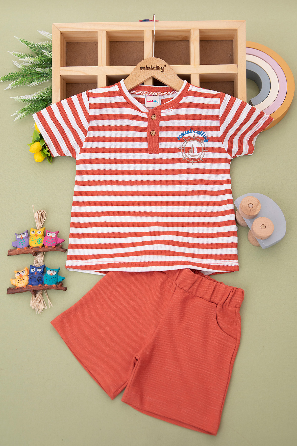 Erkek Çocuk Çizgili Petek Şortlu Takım - 241777 (7-10 Yaş)