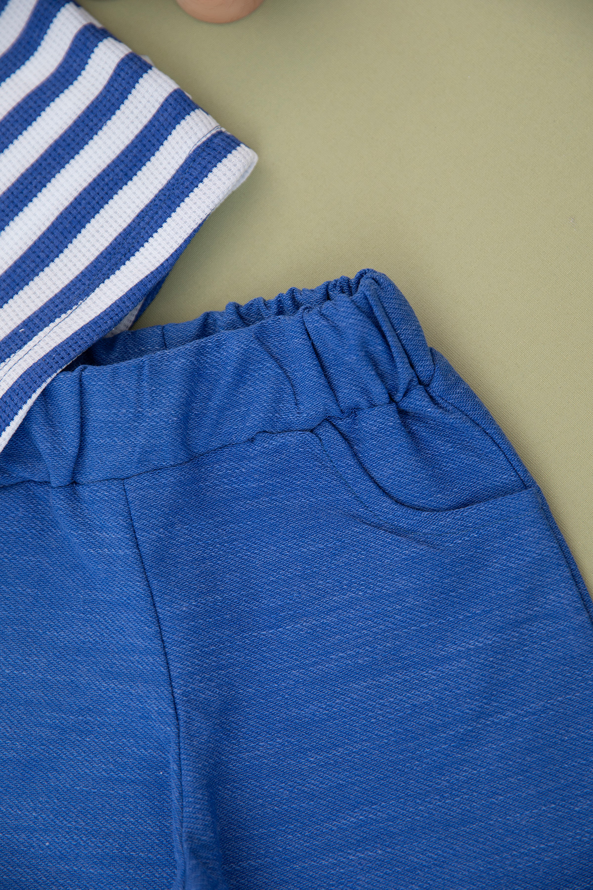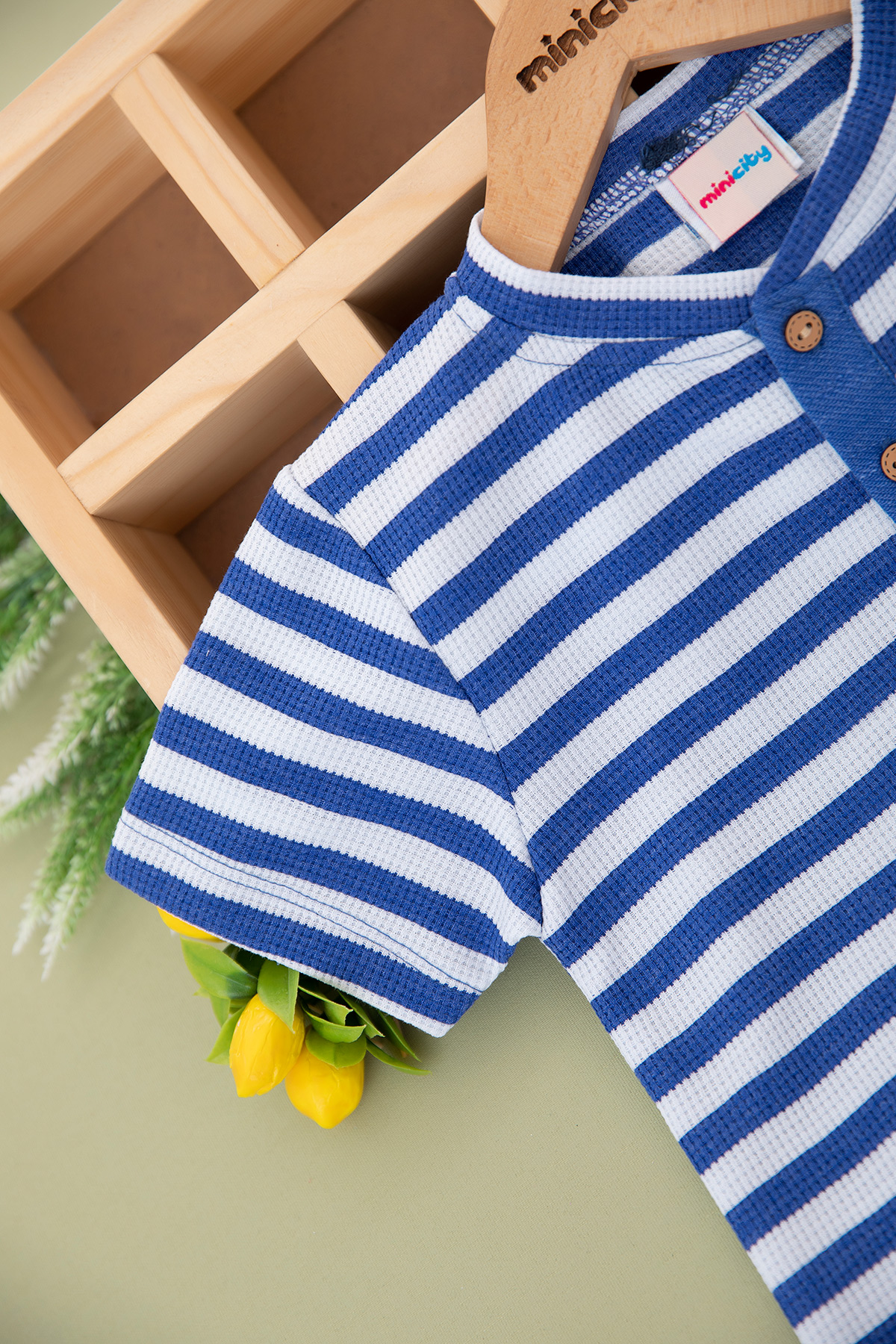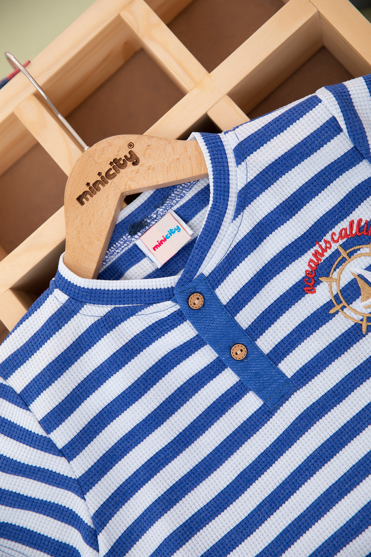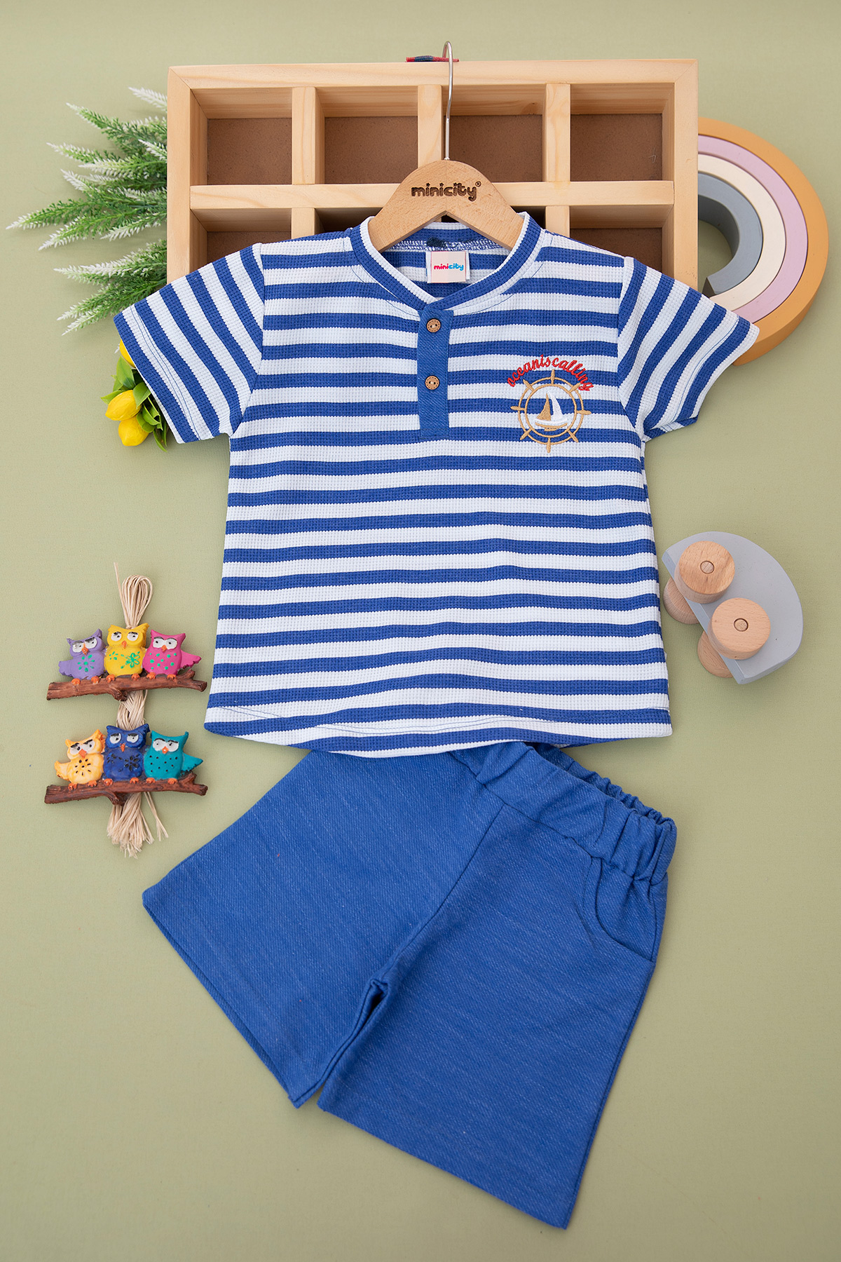 Erkek Çocuk Çizgili Petek Şortlu Takım - 241777 (7-10 Yaş)