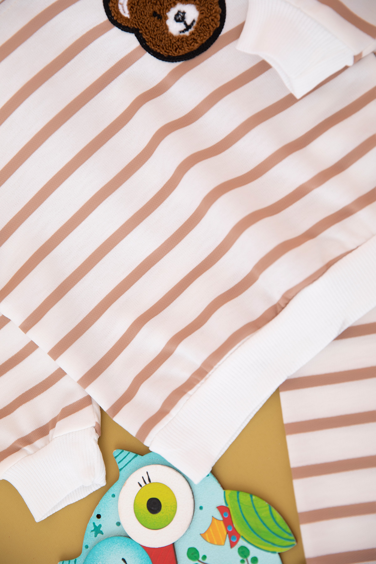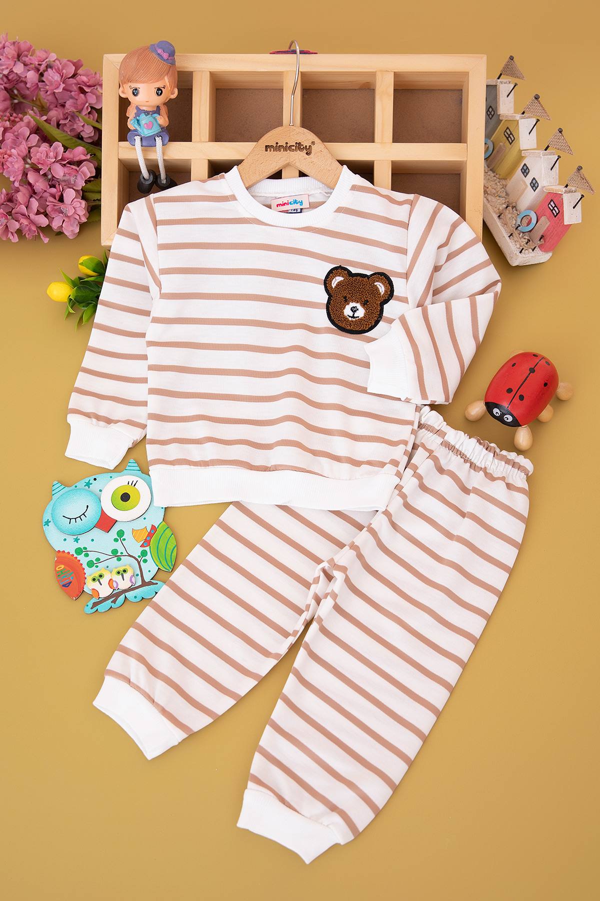Erkek Çocuk Çizgili Süzene Ayı Nakışlı Takım (2-5 Yaş)