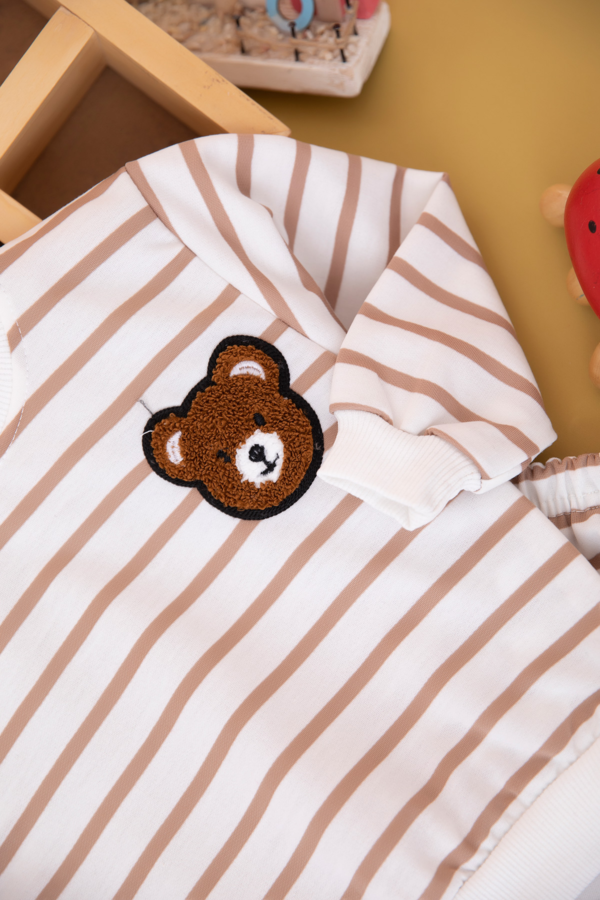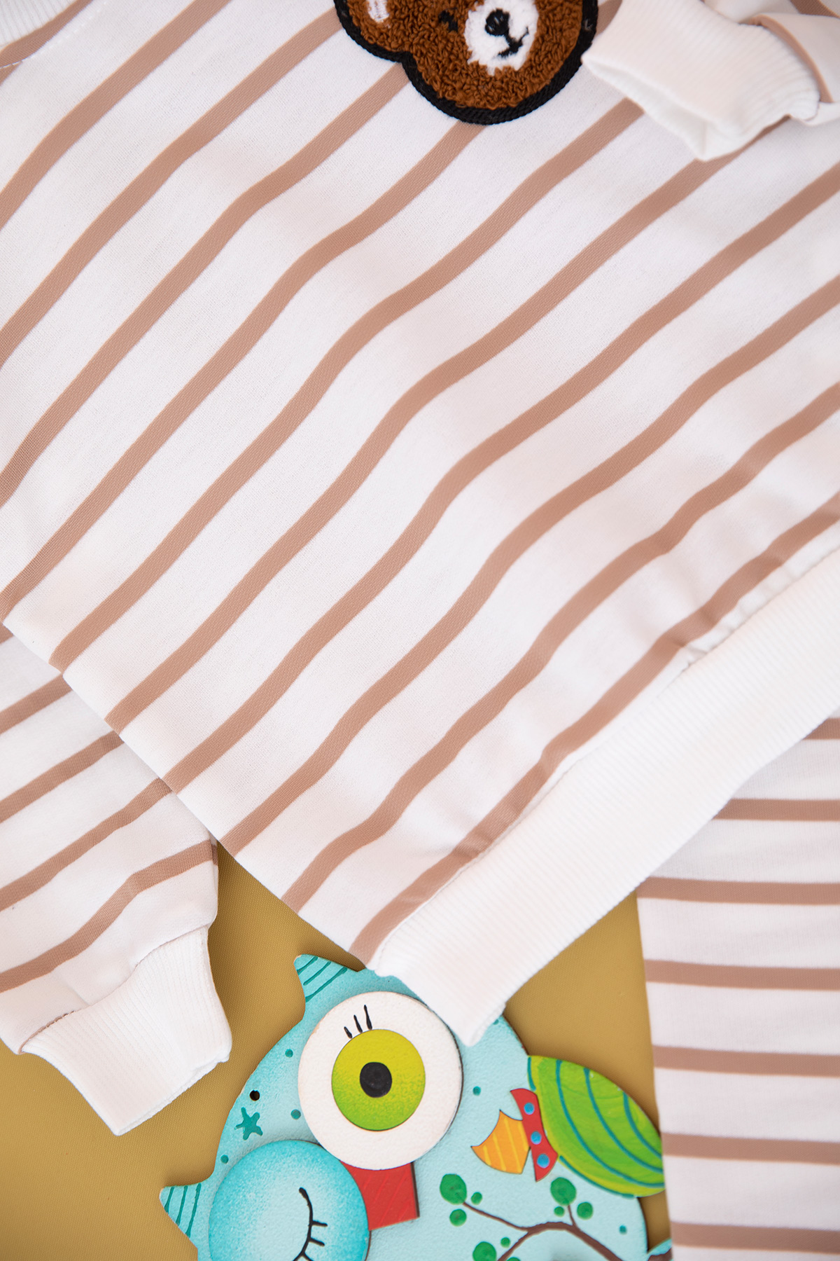 Erkek Çocuk Çizgili Süzene Ayı Nakışlı Takım (2-5 Yaş)