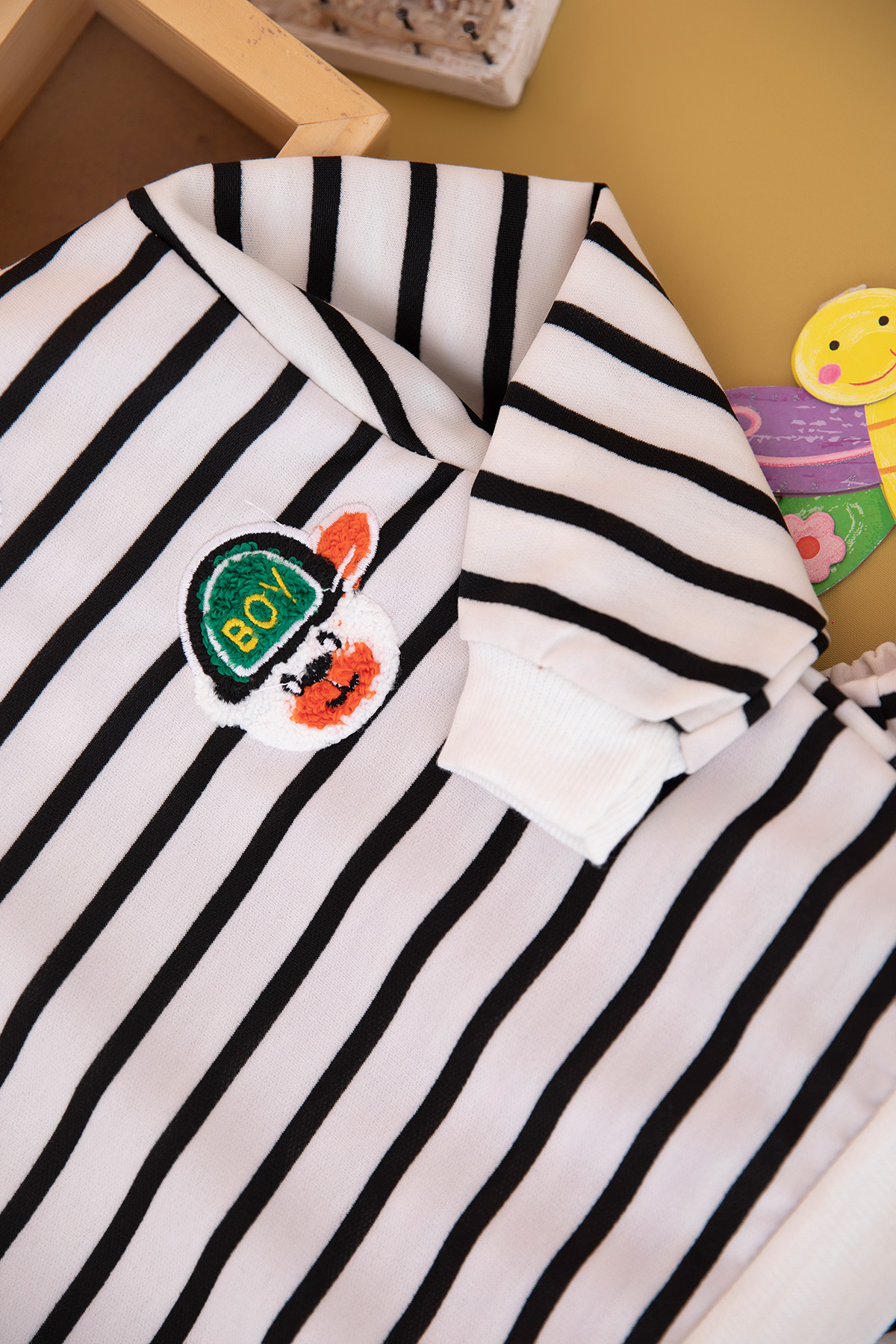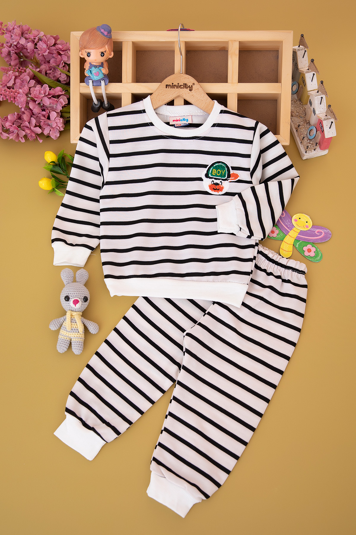 Erkek Çocuk Çizgili Süzene Boy Nakışlı Takım (2-5 Yaş)