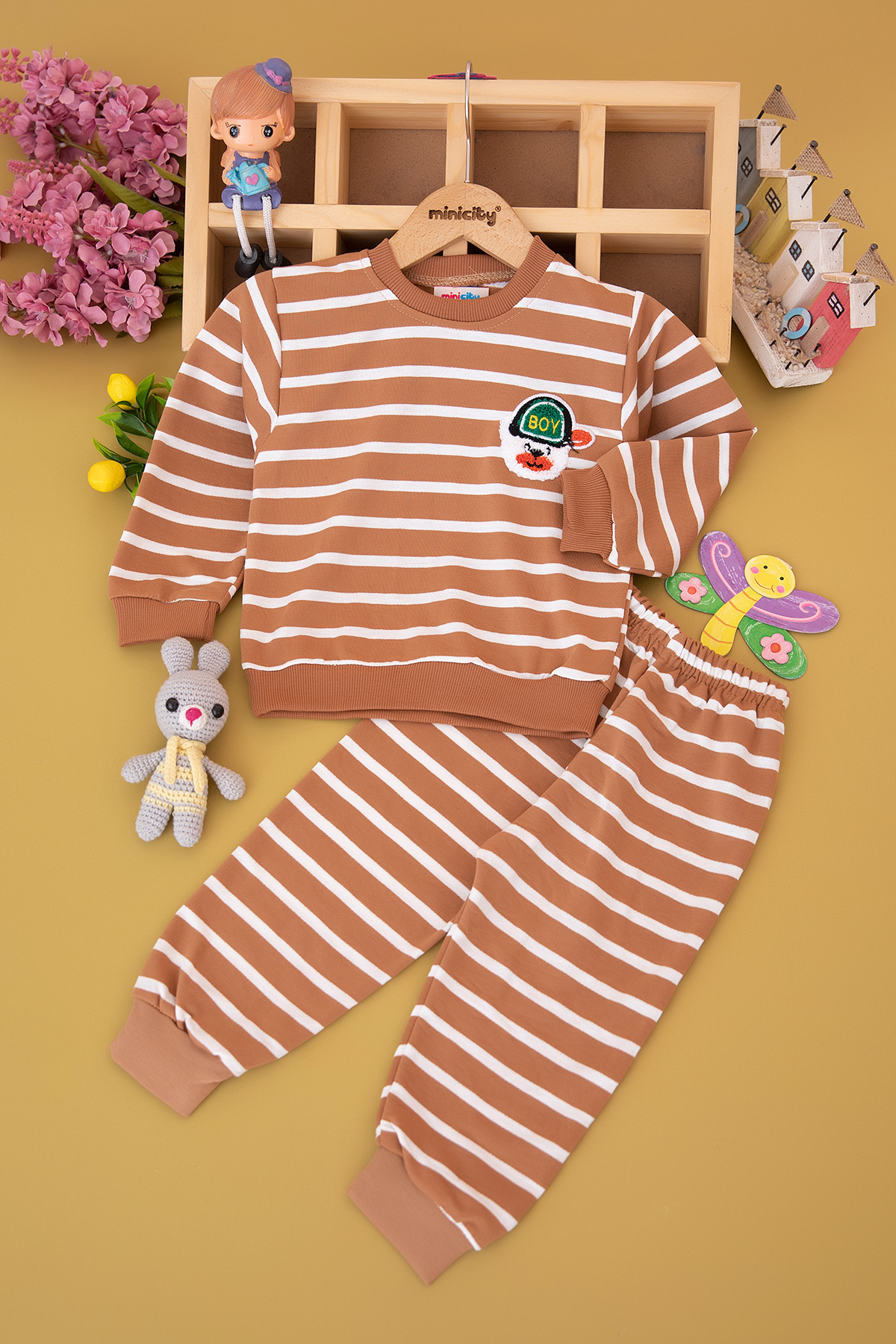 Erkek Çocuk Çizgili Süzene Boy Nakışlı Takım (2-5 Yaş)
