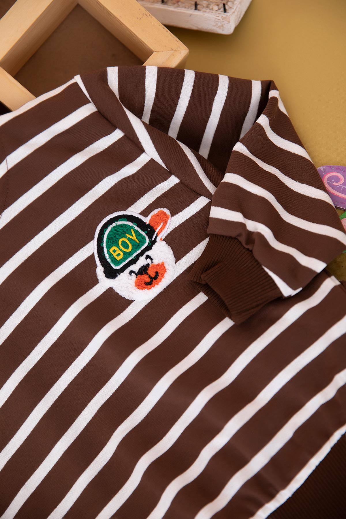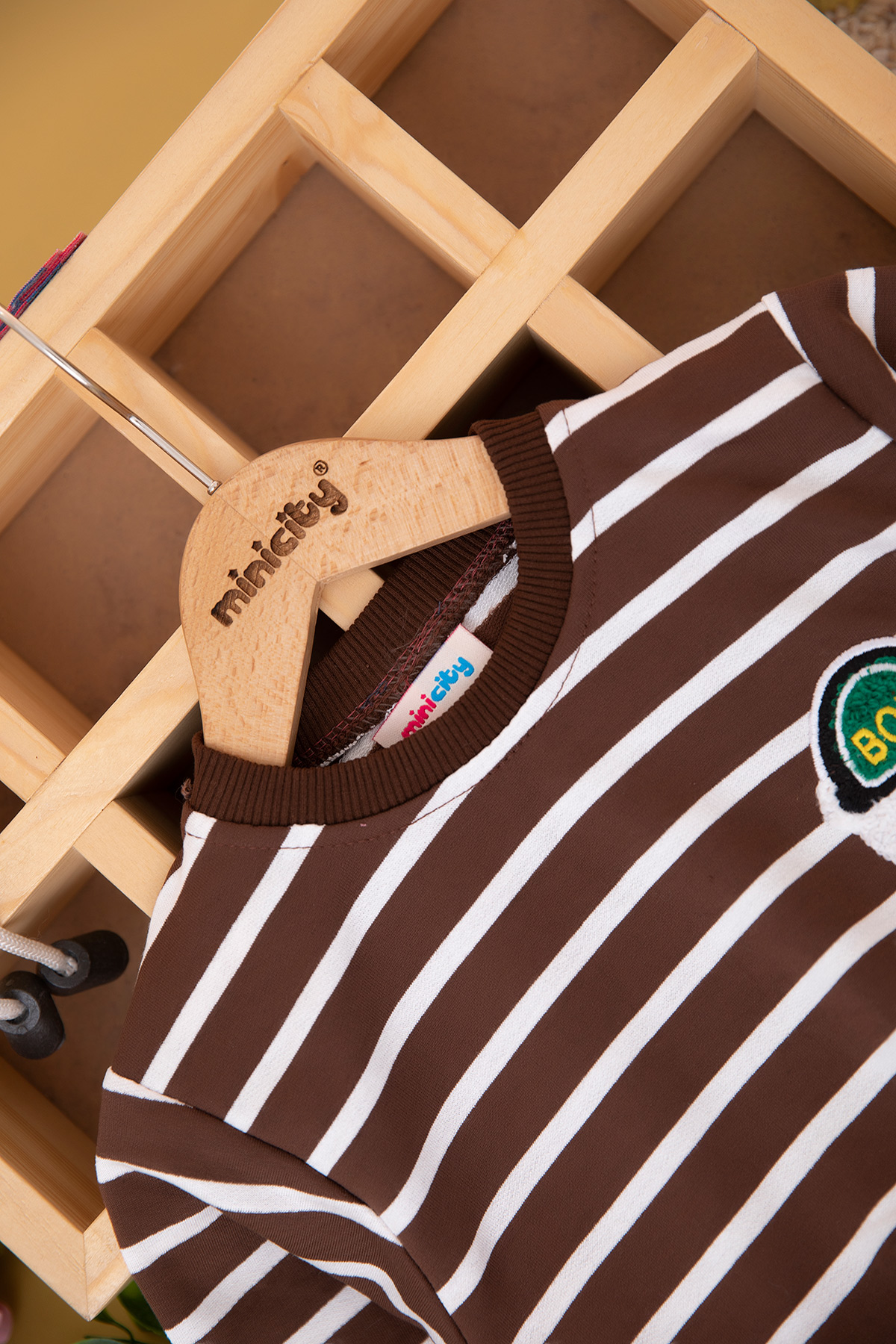 Erkek Çocuk Çizgili Süzene Boy Nakışlı Takım (2-5 Yaş)