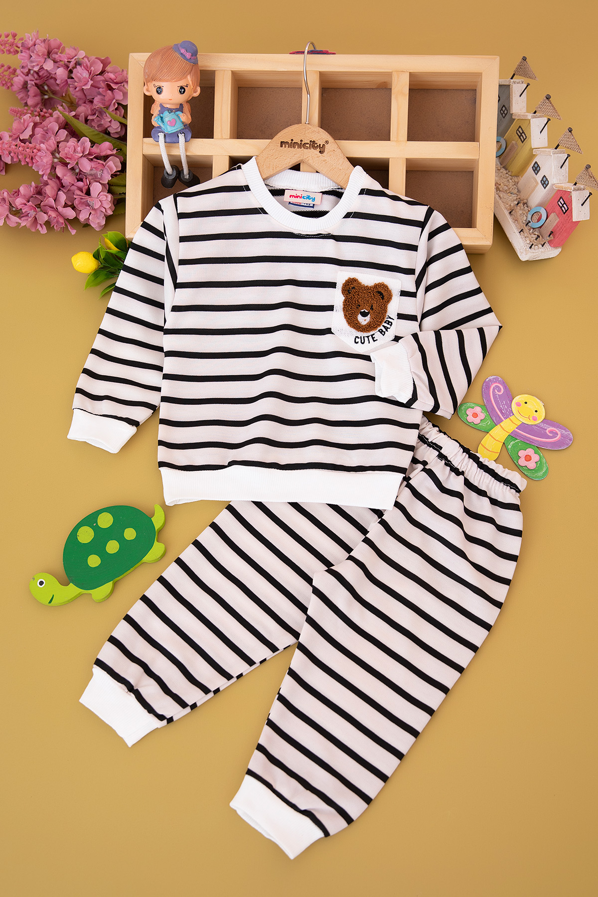 Erkek Çocuk Çizgili Süzene Cute Baby Nakışlı Takım (2-5 Yaş)
