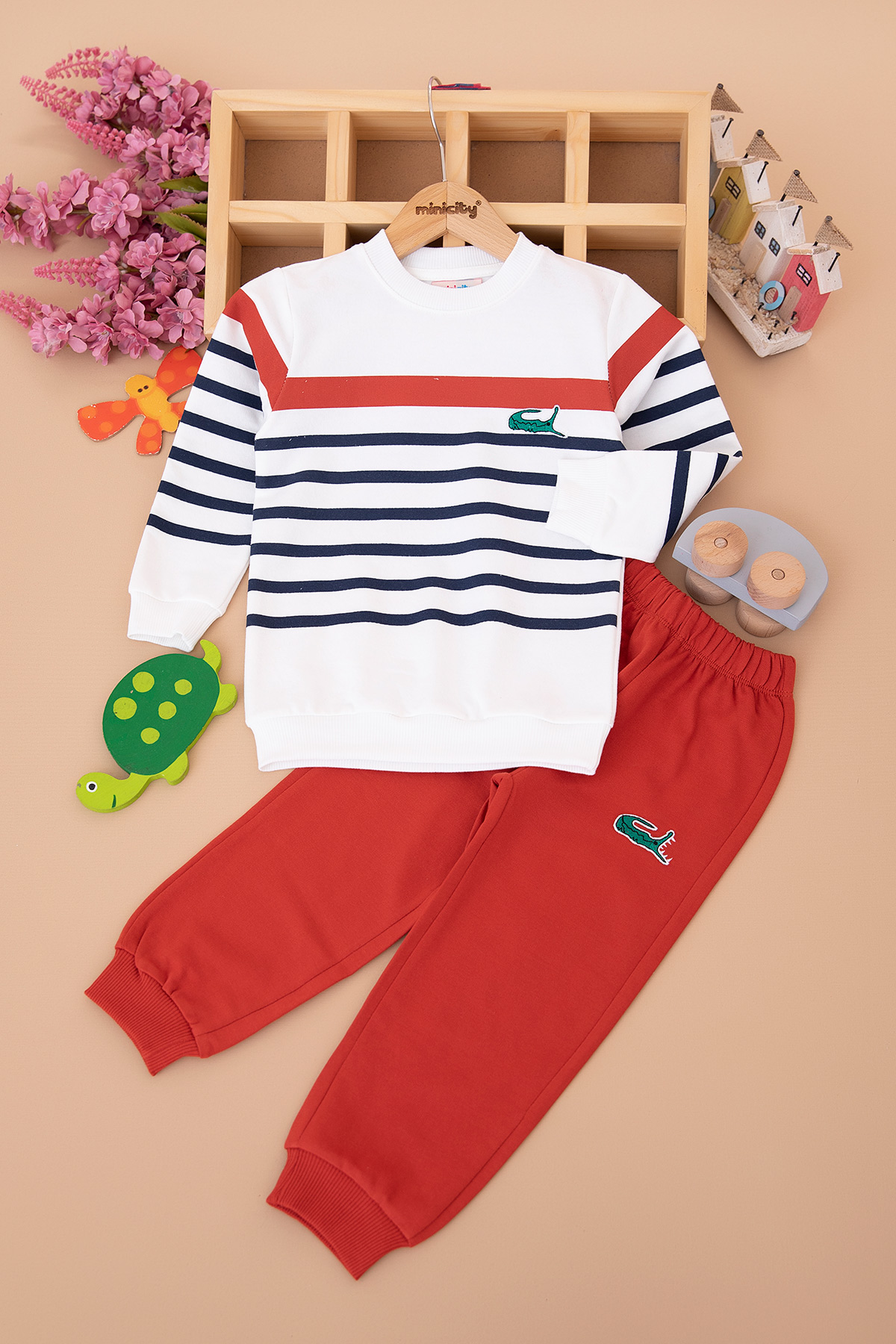 Erkek Çocuk Çizgili Timsah Nakışlı Takım (3-10 Yaş)