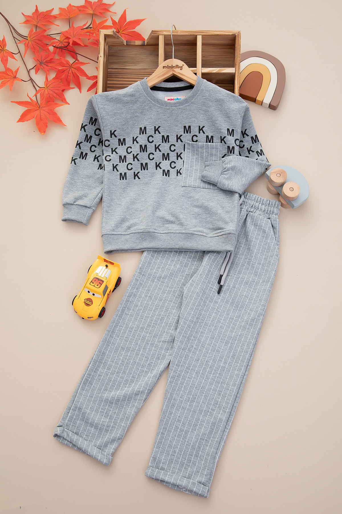Erkek Çocuk Cmk Baskılı Çizgili Cepli Takım - 200915 (4-11 Yaş)