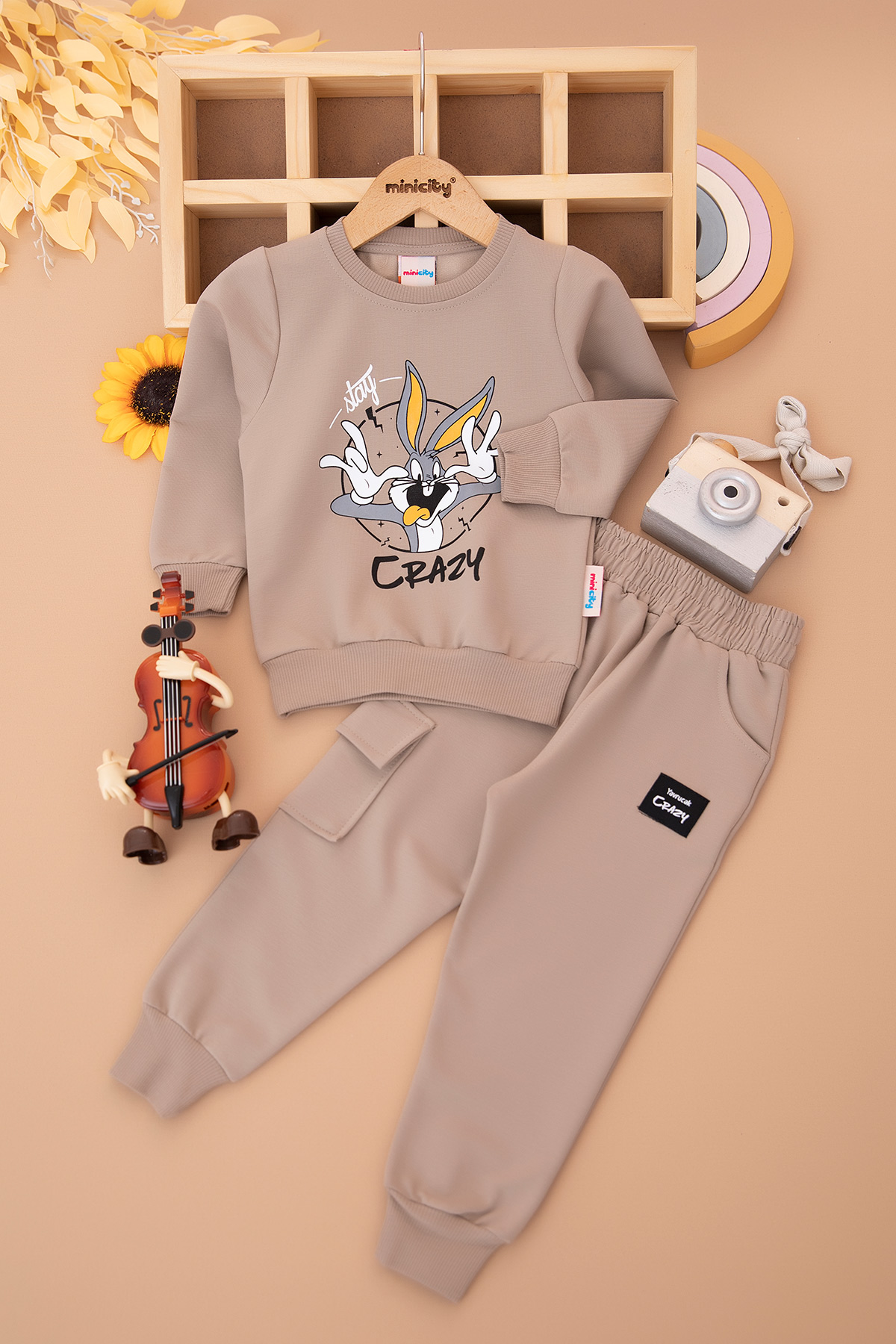 Erkek Çocuk Crazy Tavşan Baskılı Takım - M-1115 (2-5 Yaş)