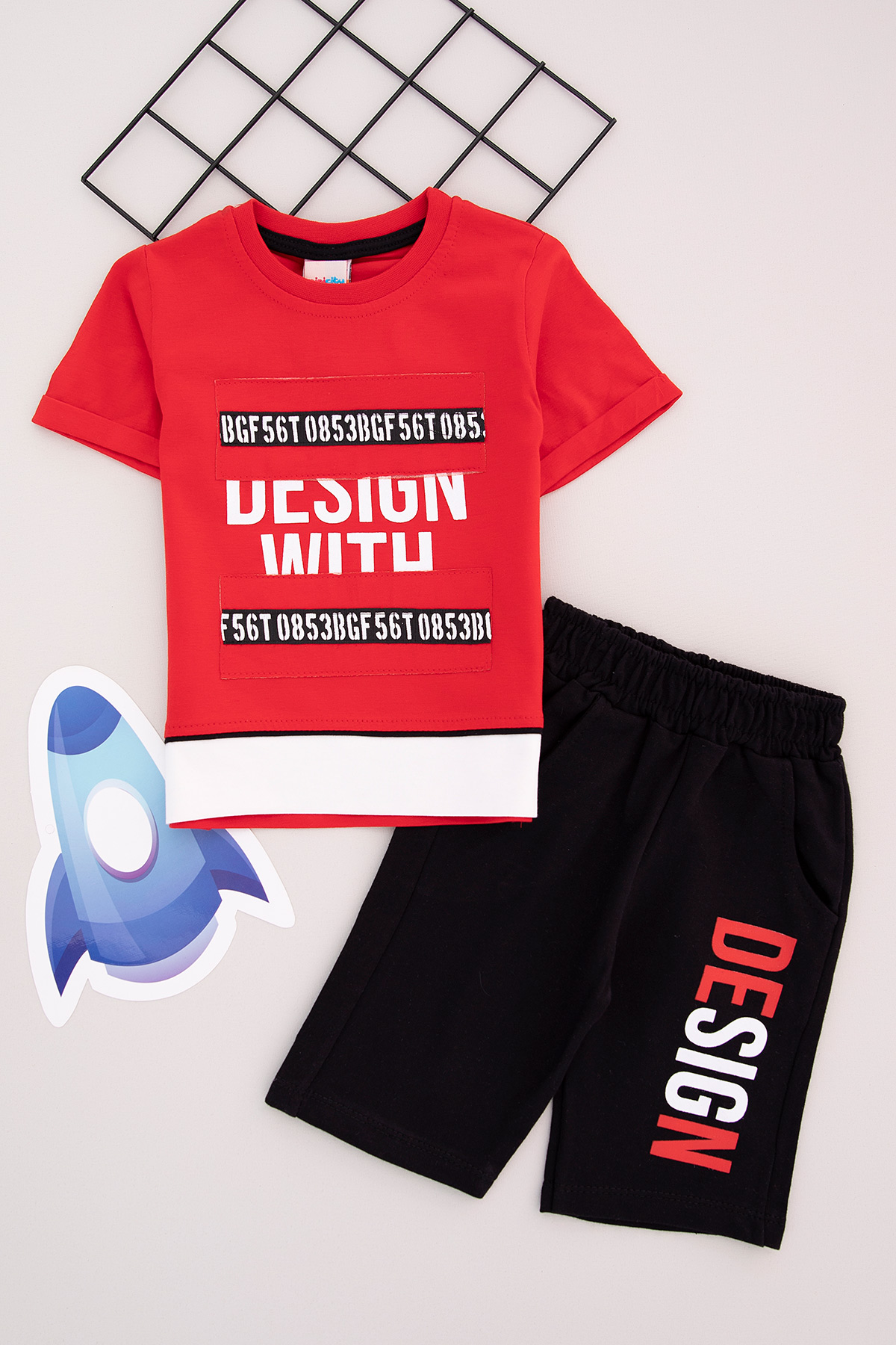 Erkek Çocuk Desing Wıth Bskl Şortlu Takım - M-338 (1-4 Yaş)