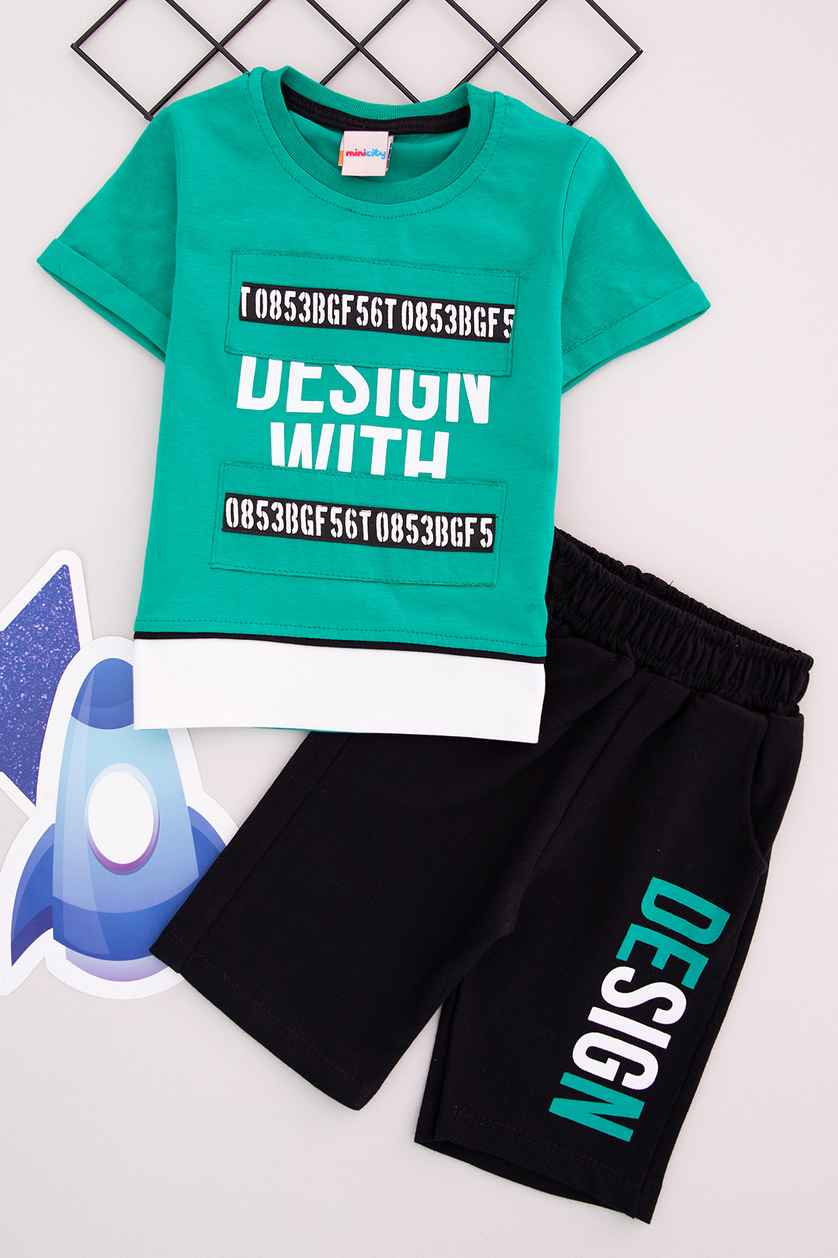 Erkek Çocuk Desing Wıth Bskl Şortlu Takım - M-338 (1-4 Yaş)