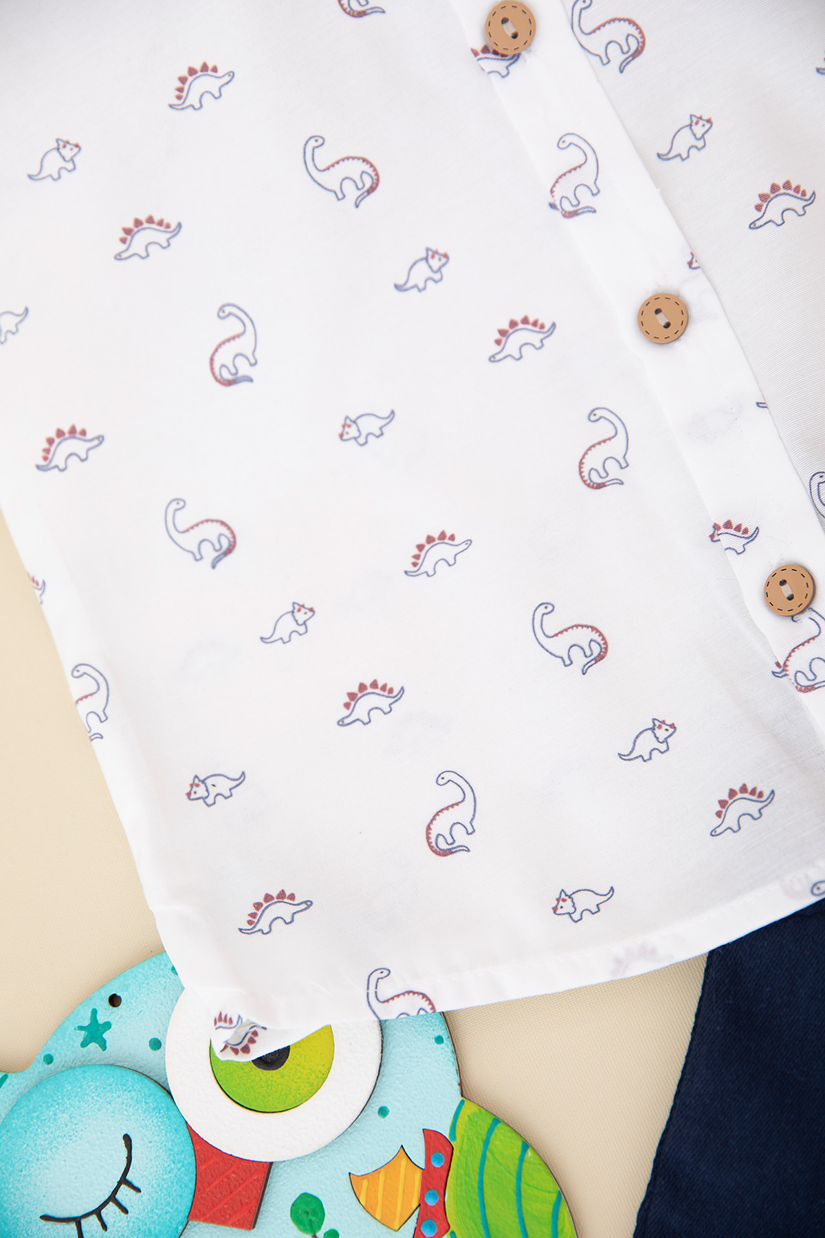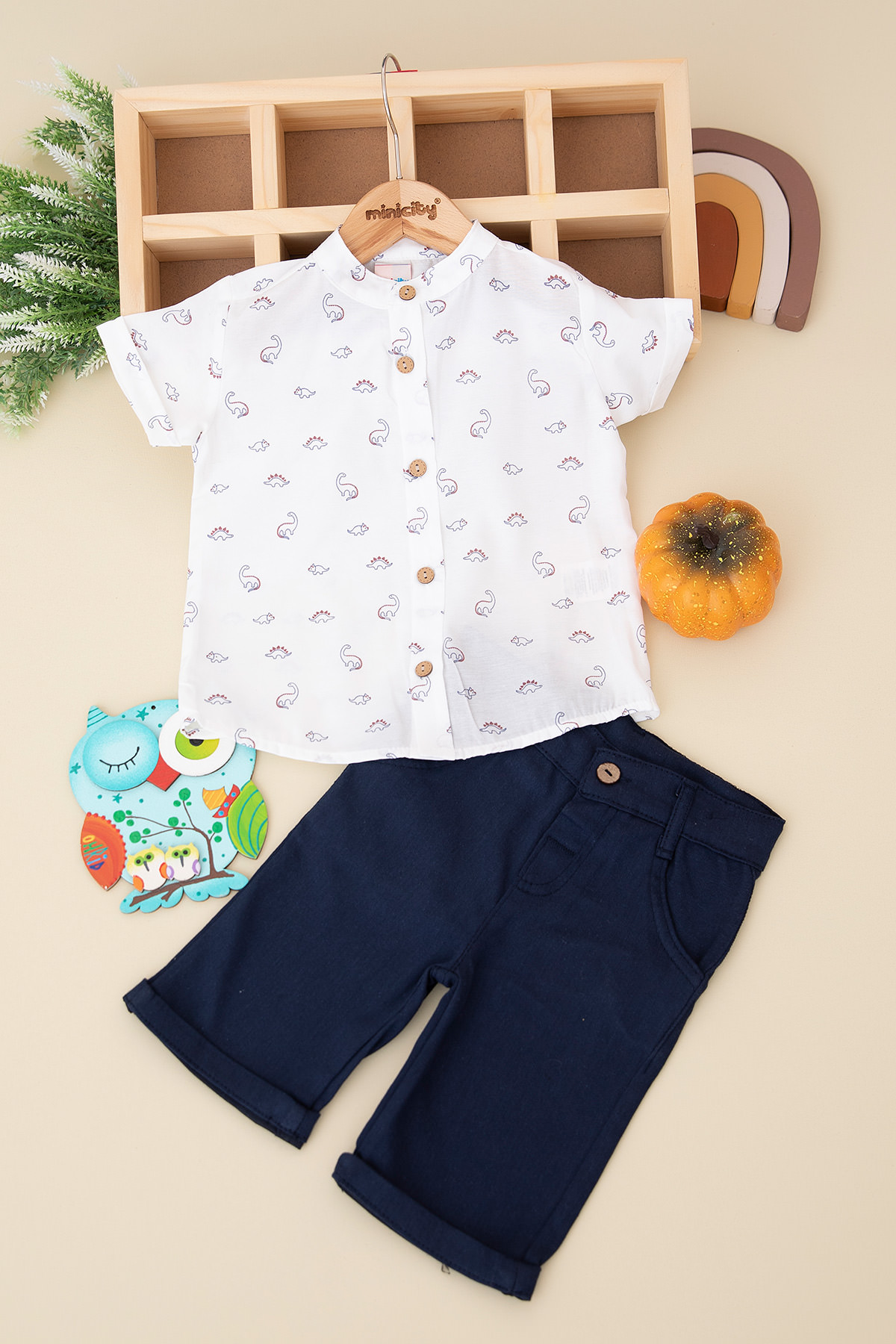 Erkek Çocuk Dinazor Baskılı Gömlekli Takım - 3967 (2-5 Yaş)