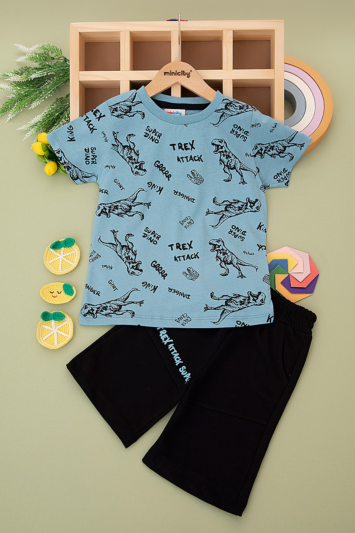 Erkek Çocuk Dinazor Baskılı Şortlu Takım - 24121 (3-6 Yaş)