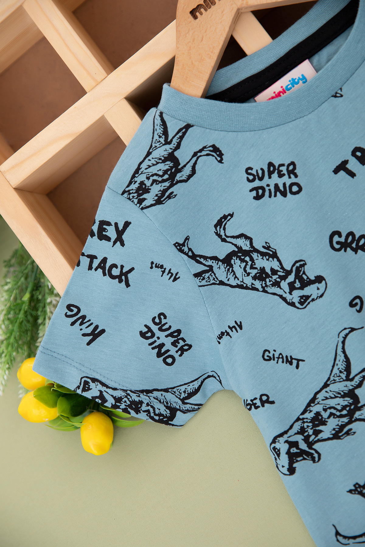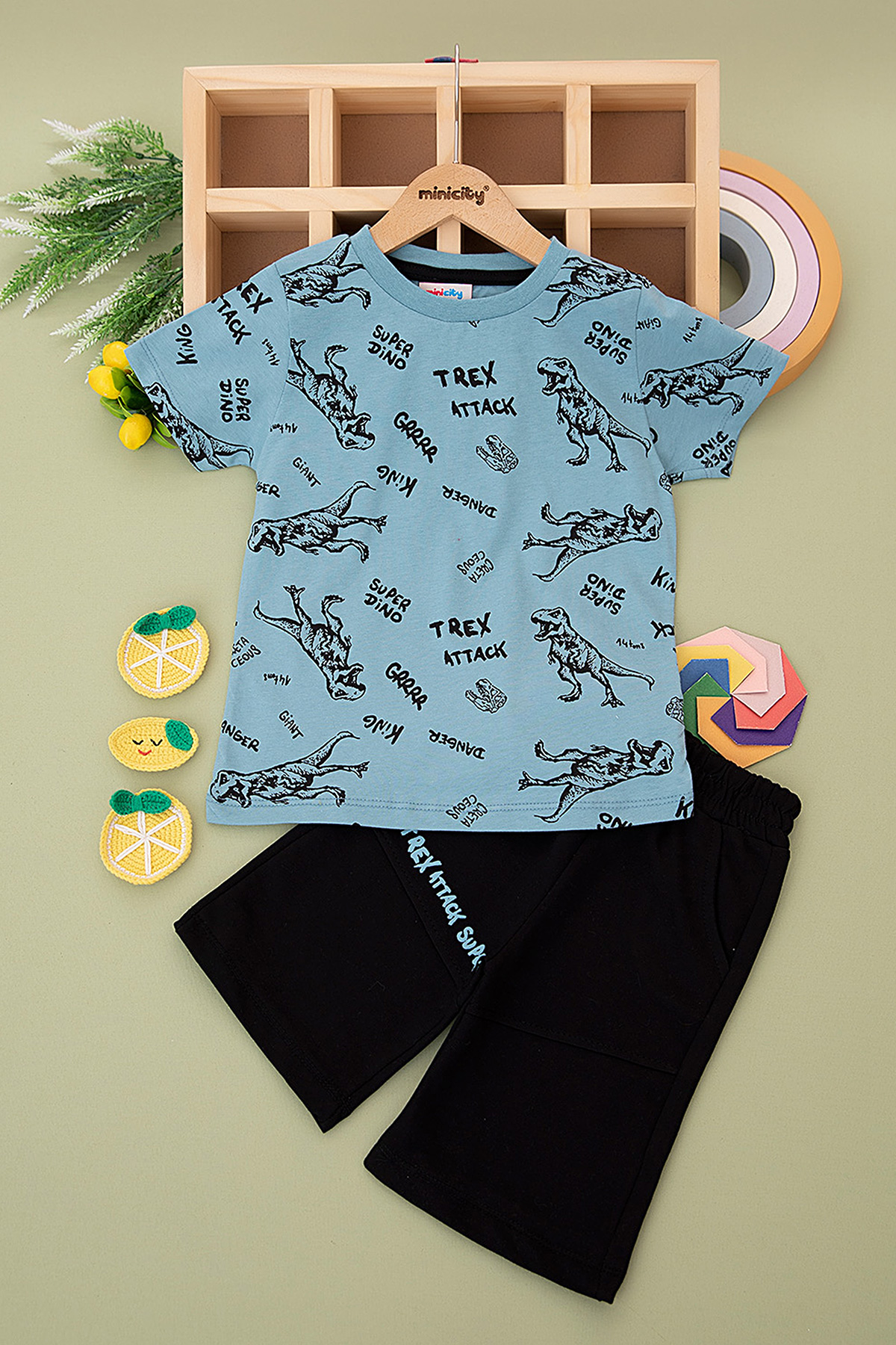 Erkek Çocuk Dinazor Baskılı Şortlu Takım - 24122 (7-10 Yaş)