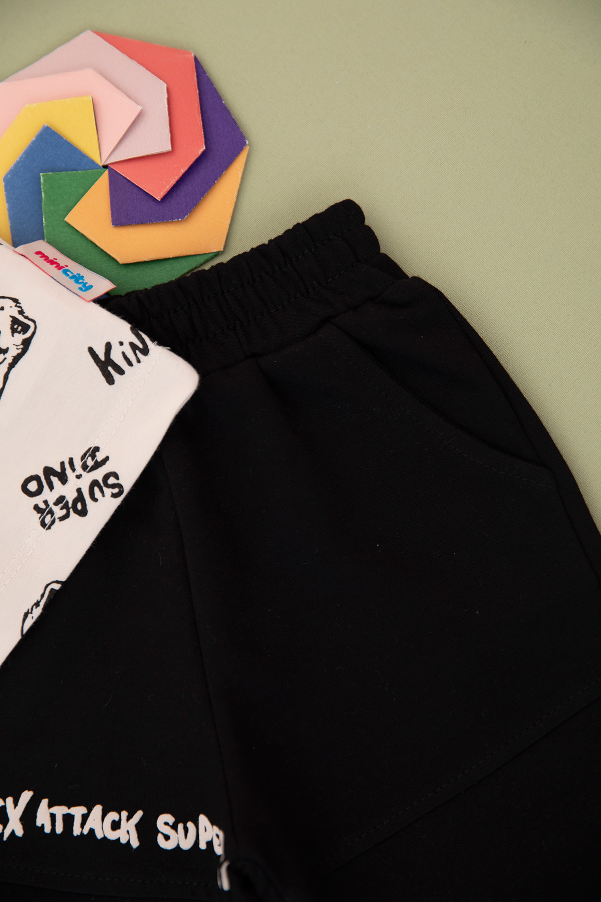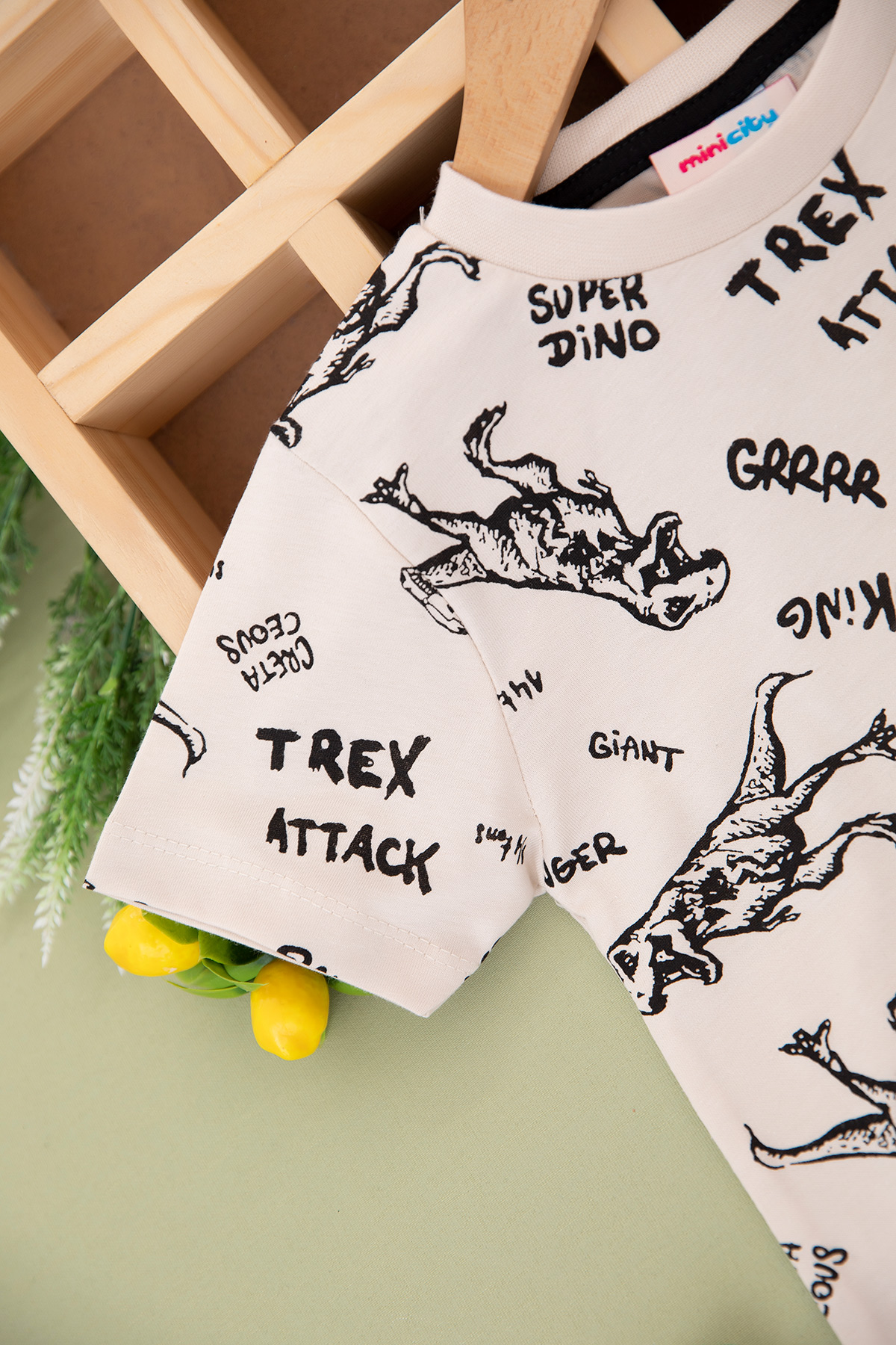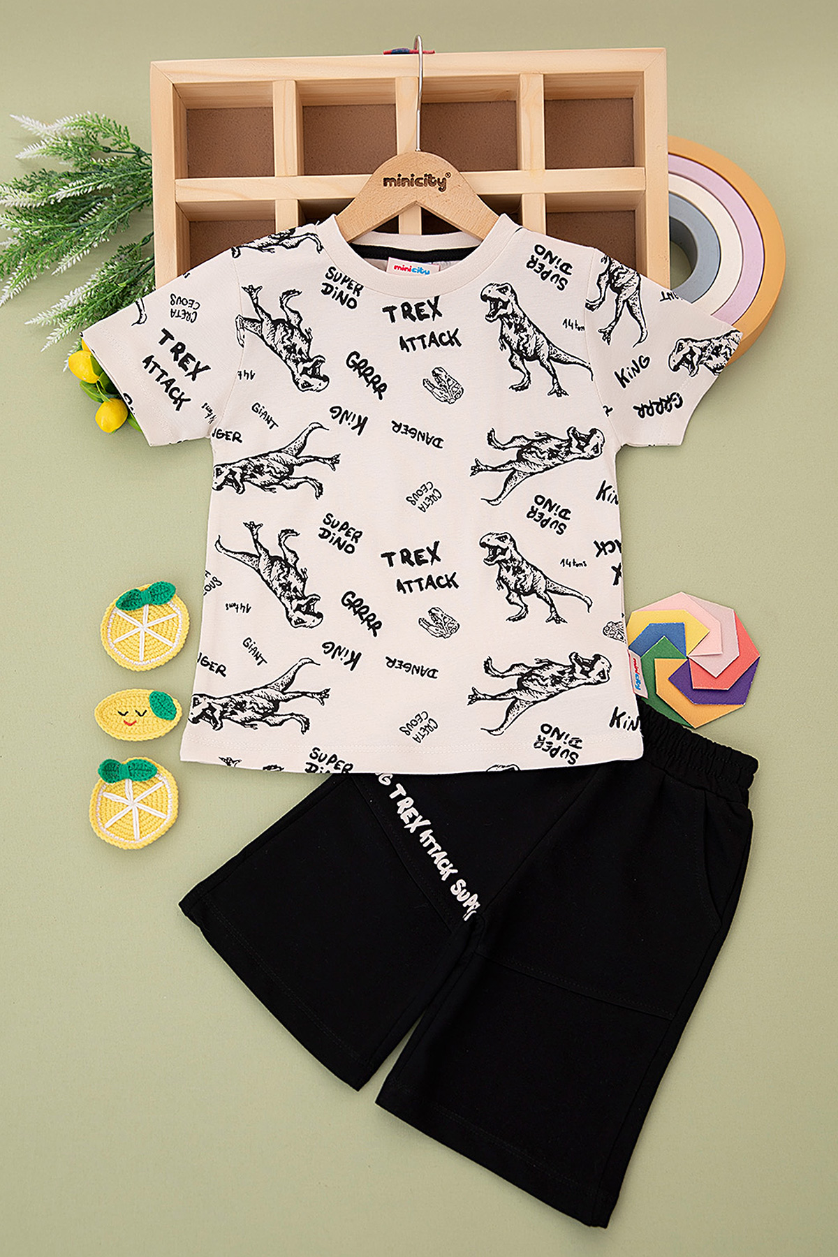Erkek Çocuk Dinazor Baskılı Şortlu Takım - 24122 (7-10 Yaş)