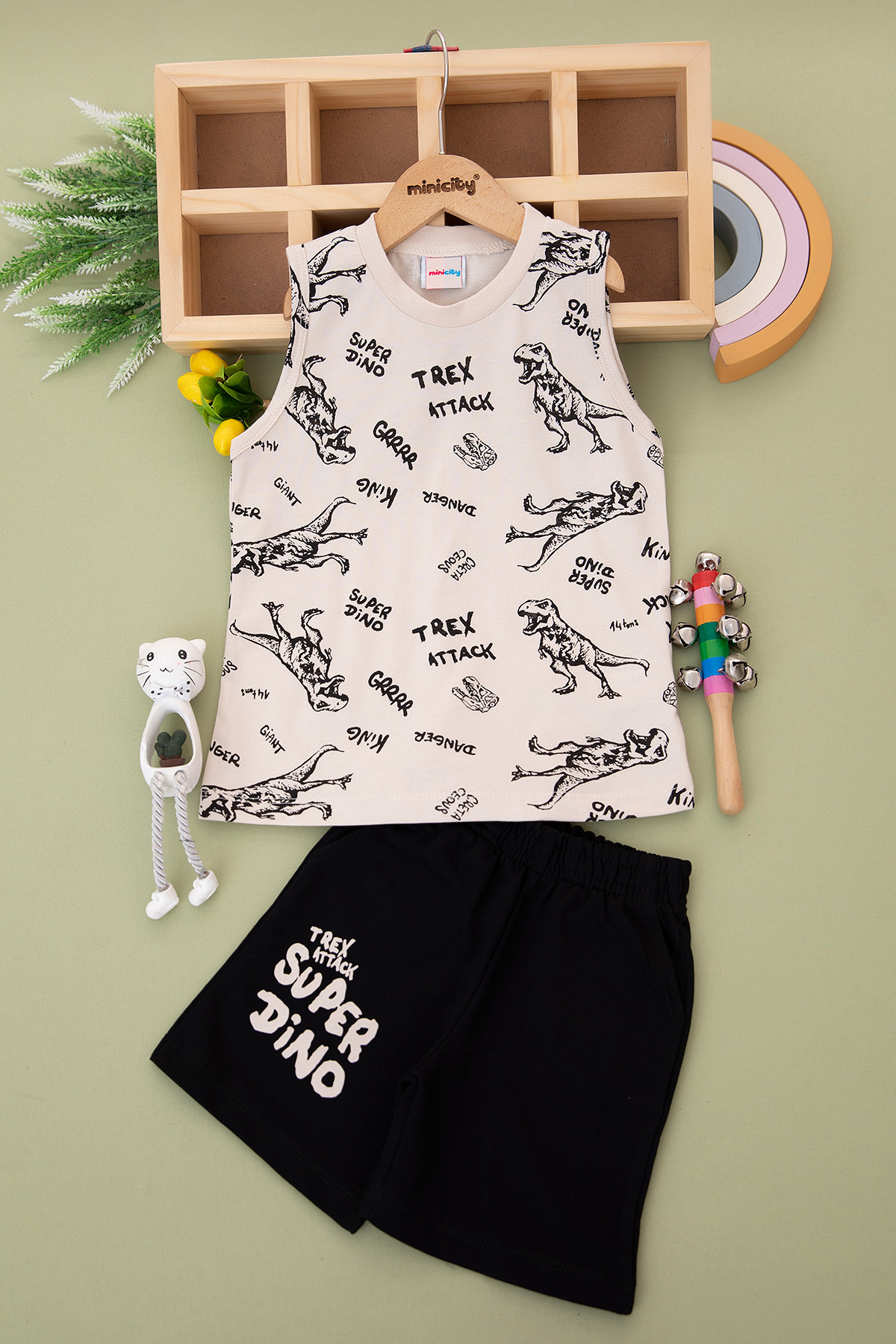Erkek Çocuk Dinazor Baskılı Şortlu Takım - 24368 (7-10 Yaş)