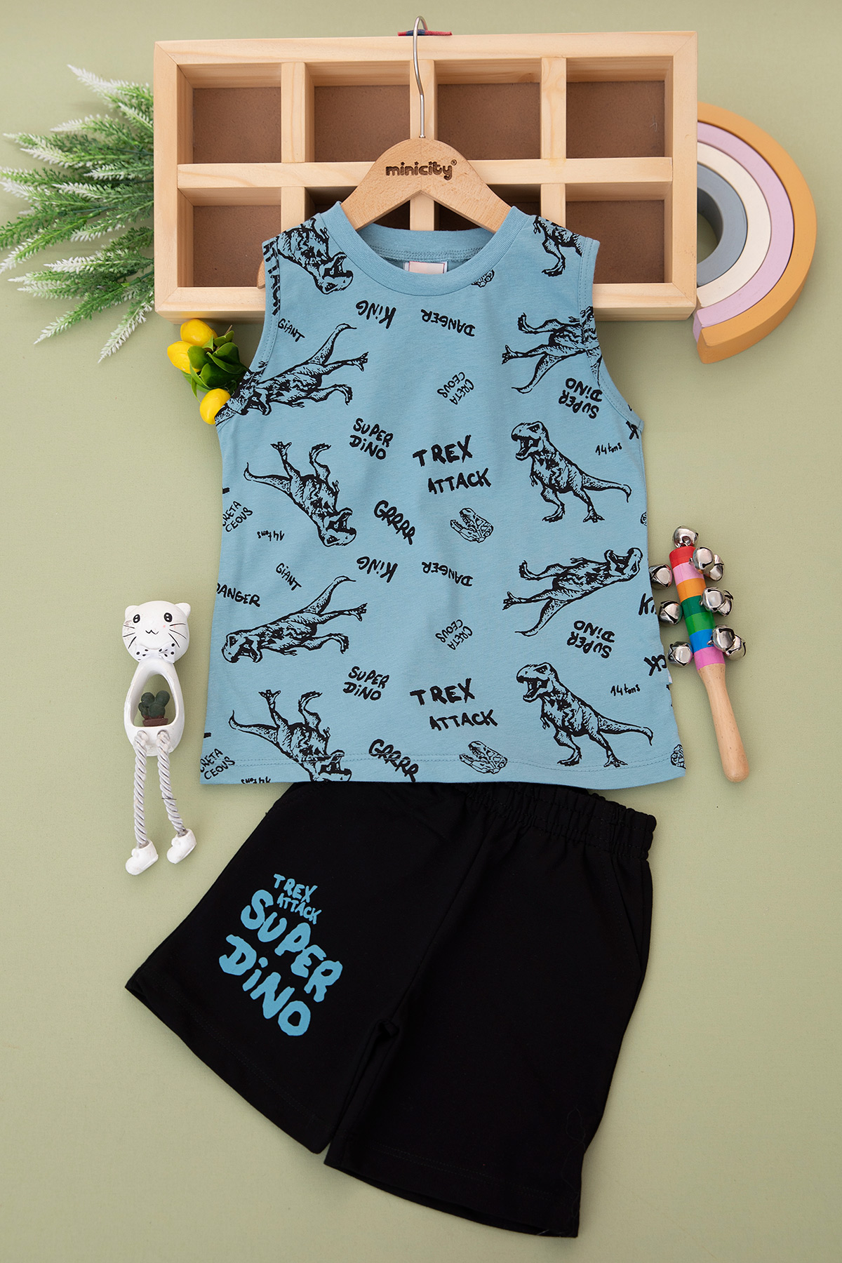 Erkek Çocuk Dinazor Baskılı Şortlu Takım - 24368 (7-10 Yaş)