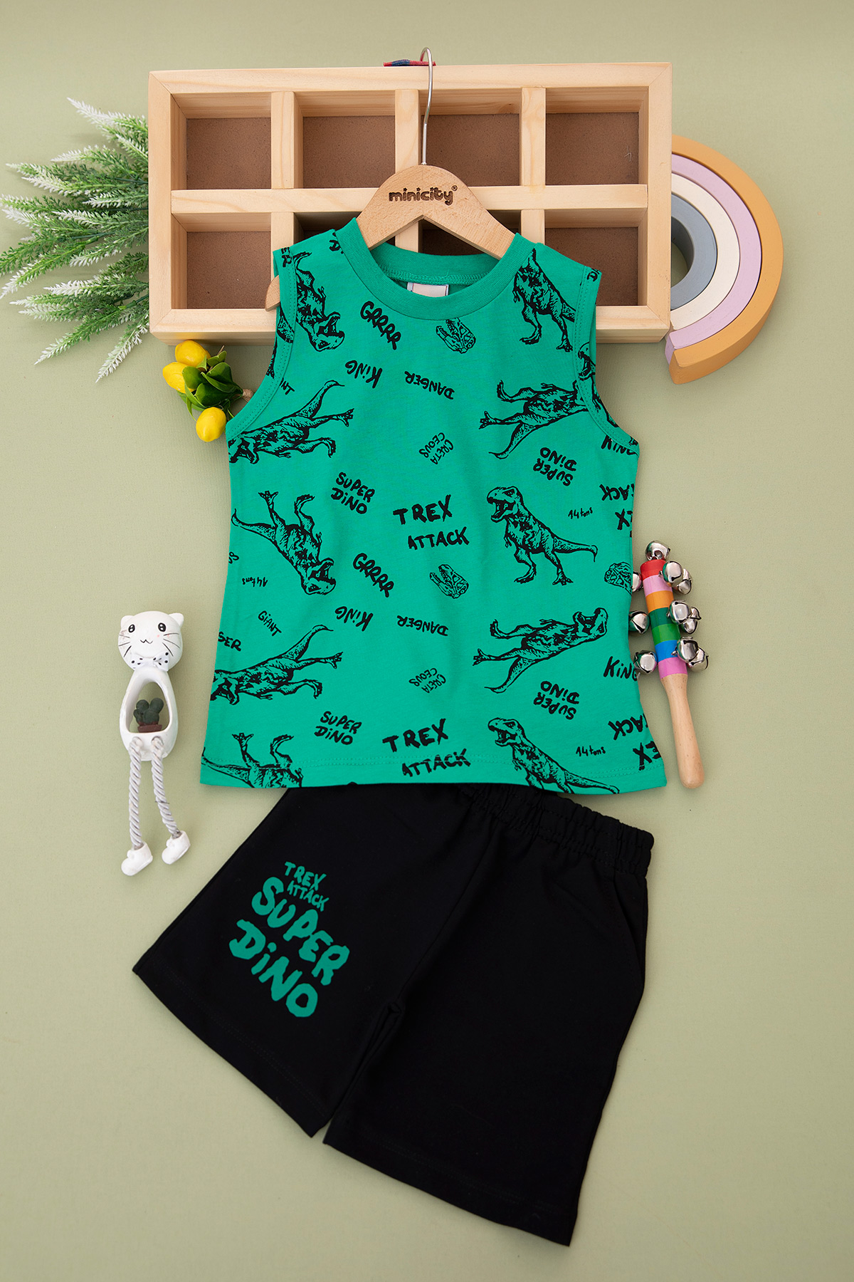 Erkek Çocuk Dinazor Baskılı Şortlu Takım - 24368 (7-10 Yaş)