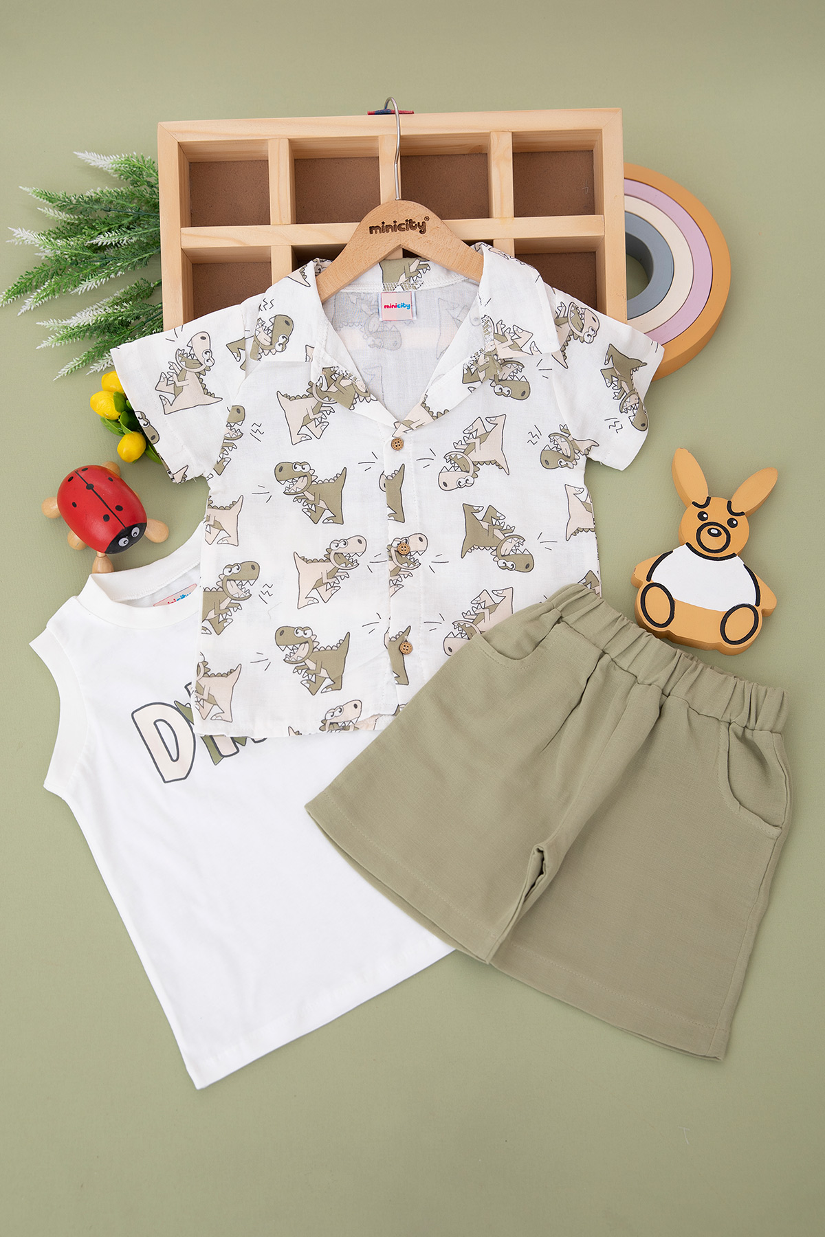 Erkek Çocuk Dinazor Müslin Şortlu Takım - 24364 (3-6 Yaş)