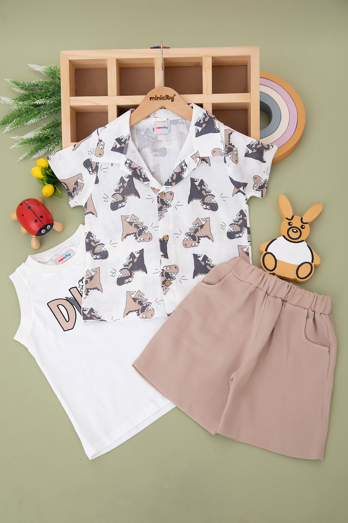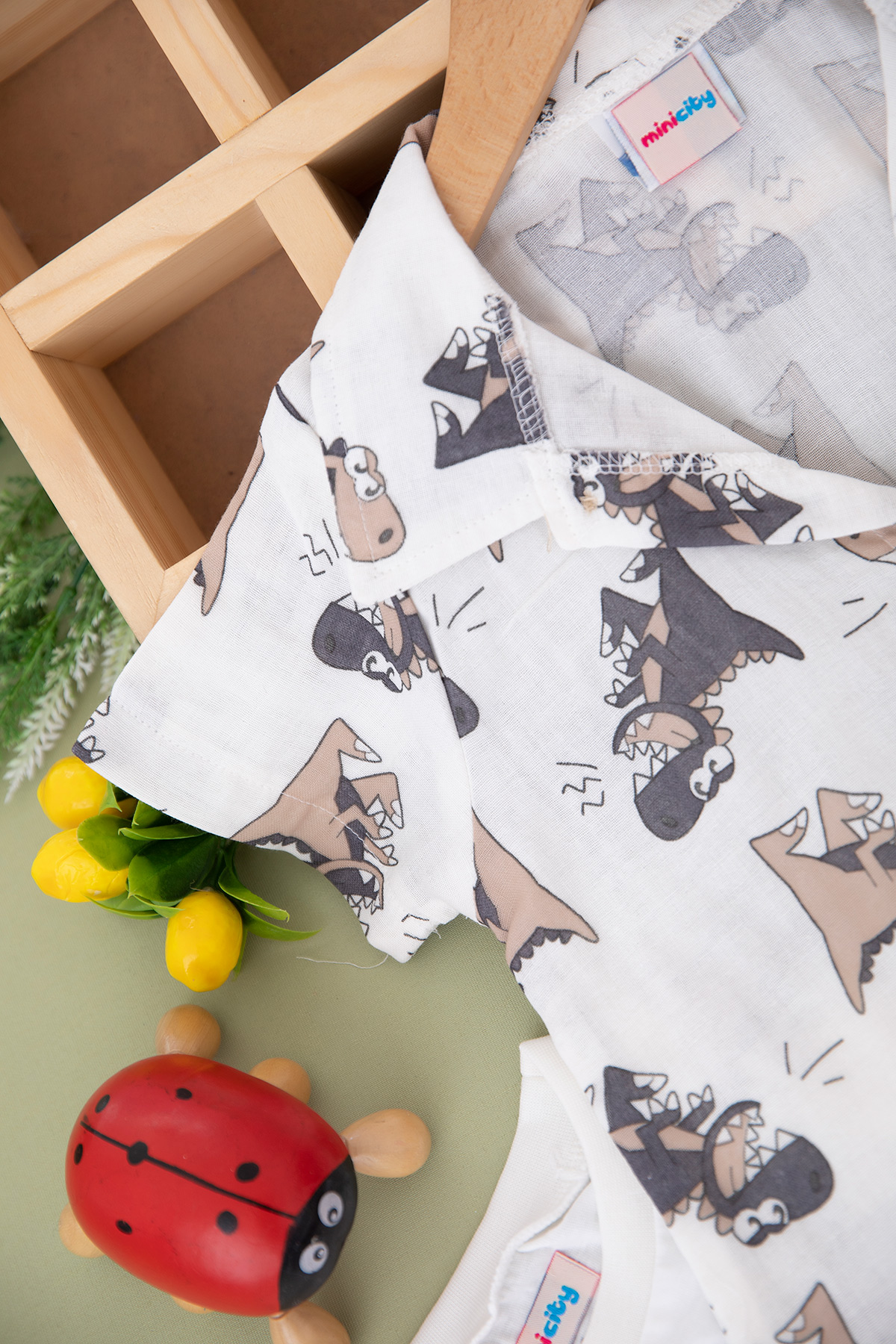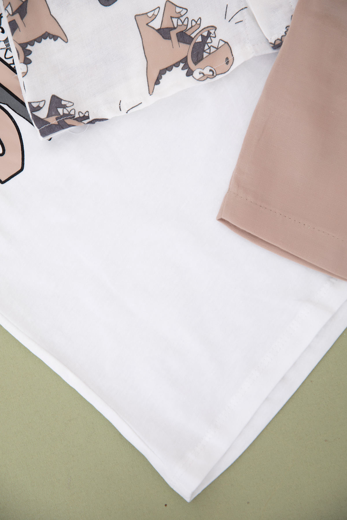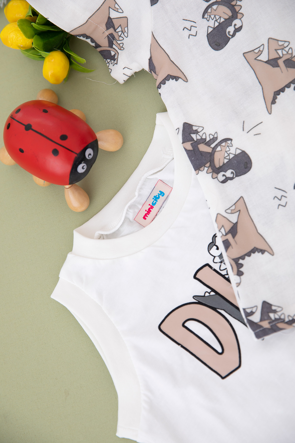 Erkek Çocuk Dinazor Müslin Şortlu Takım - 24364 (3-6 Yaş)