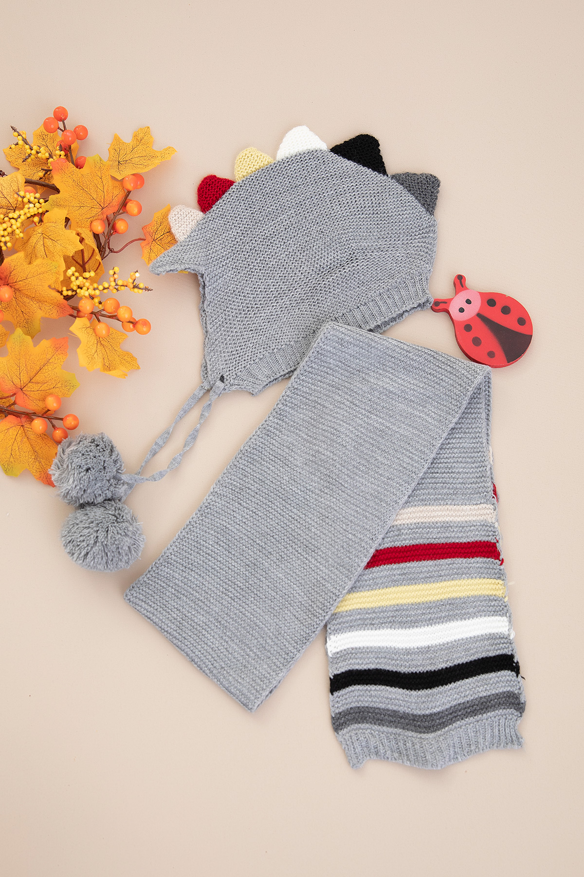 Erkek Çocuk Dinazor Şapka Atkı Takım - 9009