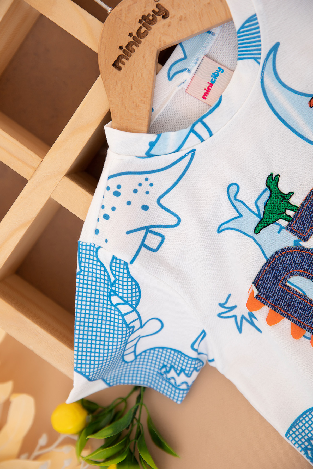 Erkek Çocuk Dino Nakışlı Şortlu Takım (3-10 Yaş)