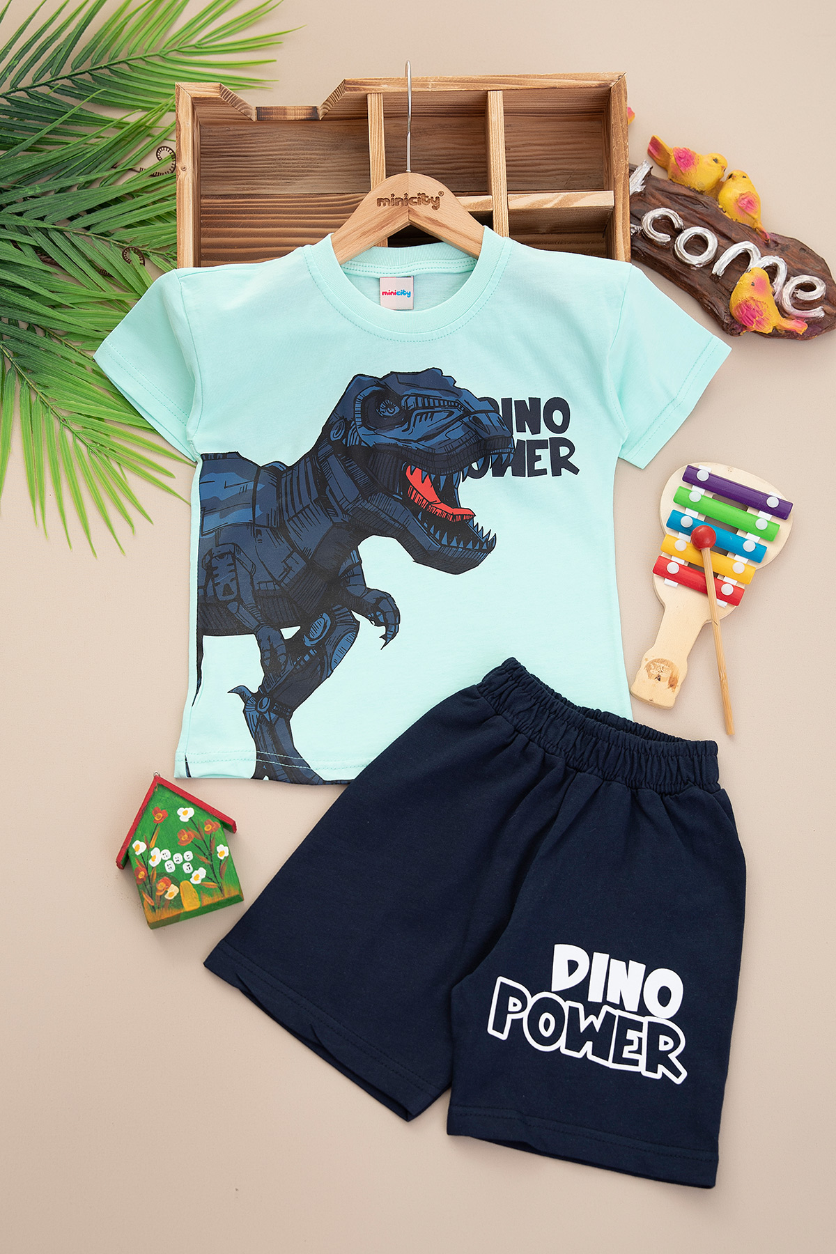 Erkek Çocuk Dino Power Baskılı Şortlu Takım (4-10 Yaş)