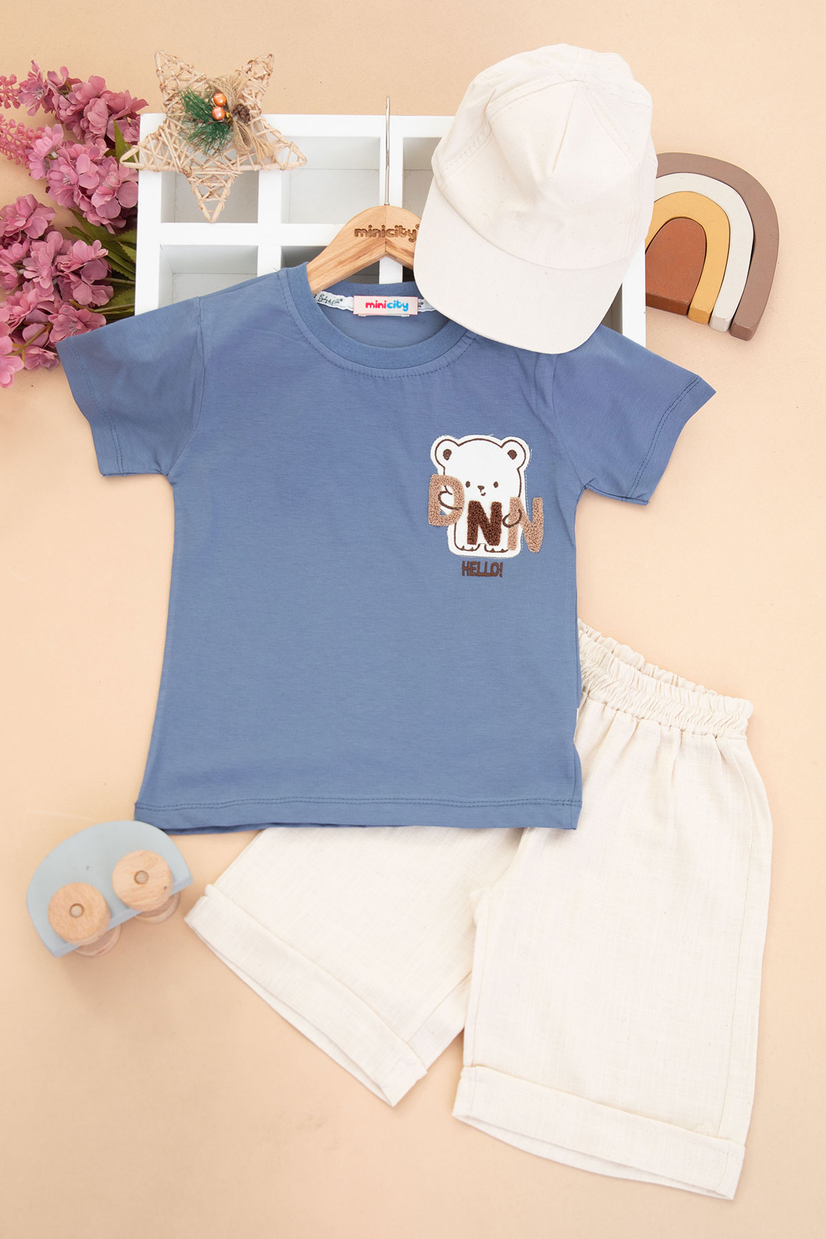 Erkek Çocuk Dnn Hello Nakışlı Şortlu Takım - 90096 (5-8 Yaş)