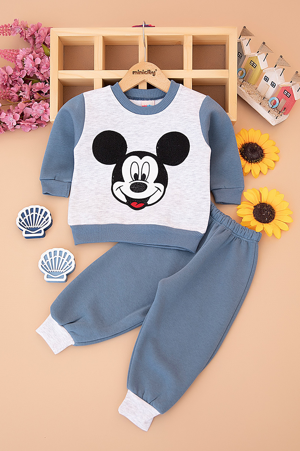 Erkek Çocuk Fare Nakışlı Üçip Takım - 2101 (1-3 Yaş)