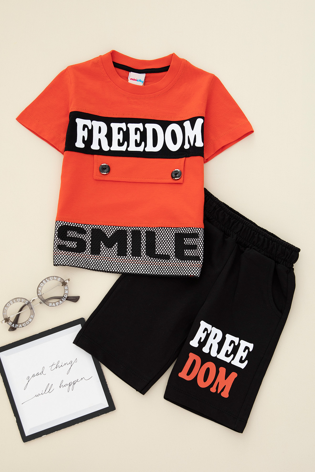 Erkek Çocuk Freedom Baskılı Şortlu Takım - M-319 (1-4 Yaş)