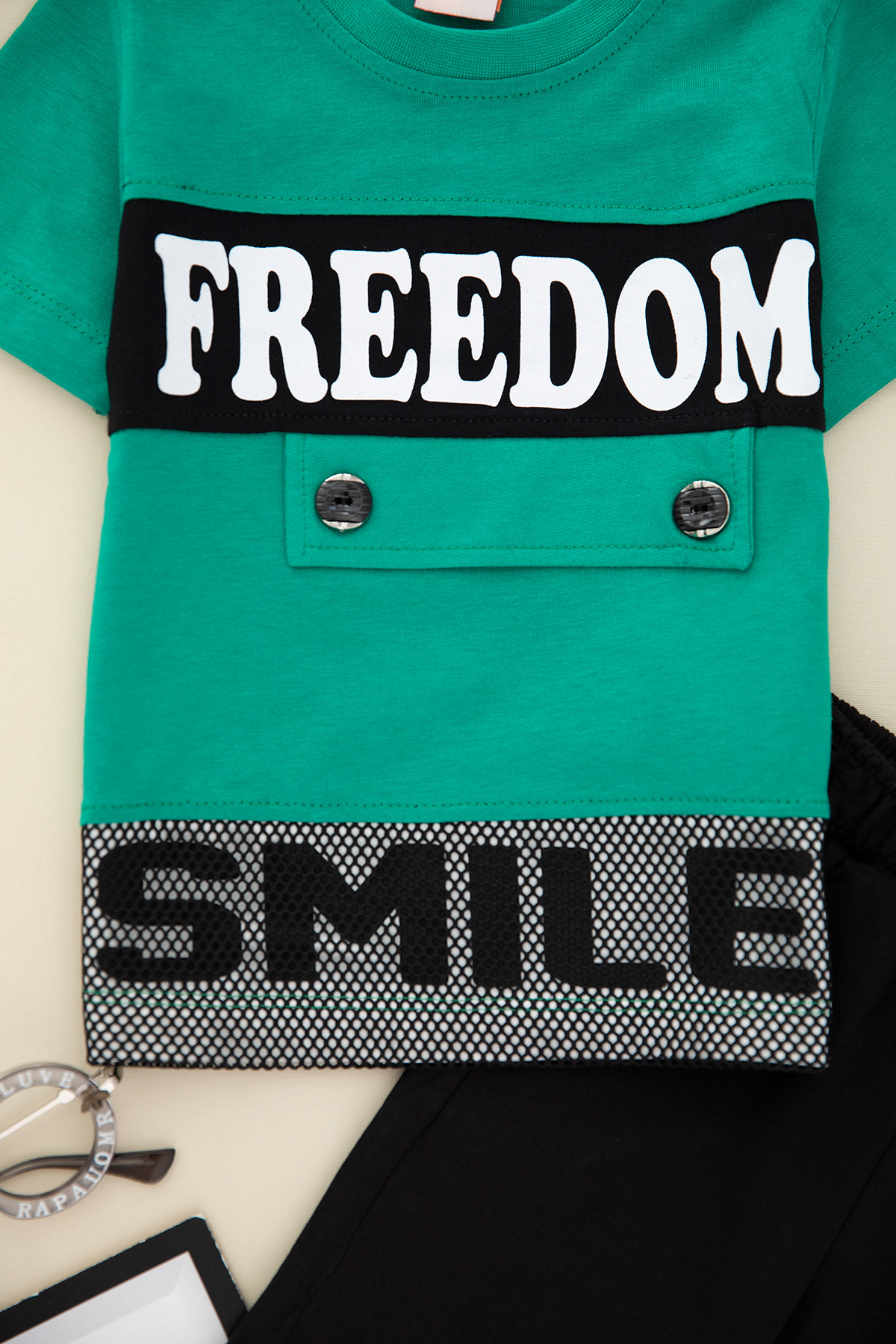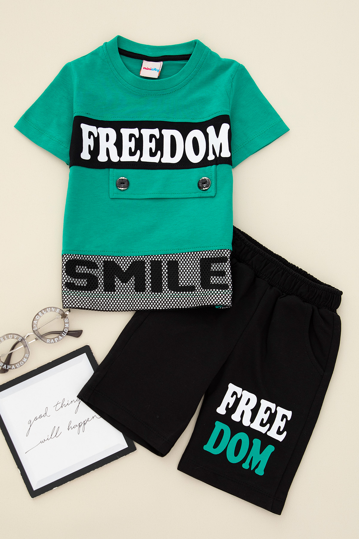 Erkek Çocuk Freedom Baskılı Şortlu Takım - M-319 (1-4 Yaş)