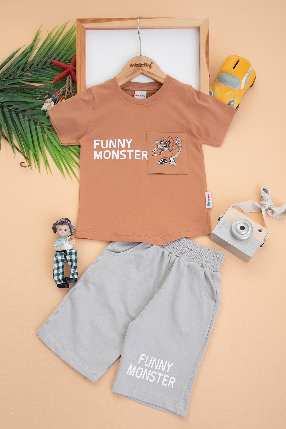 Erkek Çocuk Funny Monster Kaprili Takım - M-1075 (2-5 Yaş)