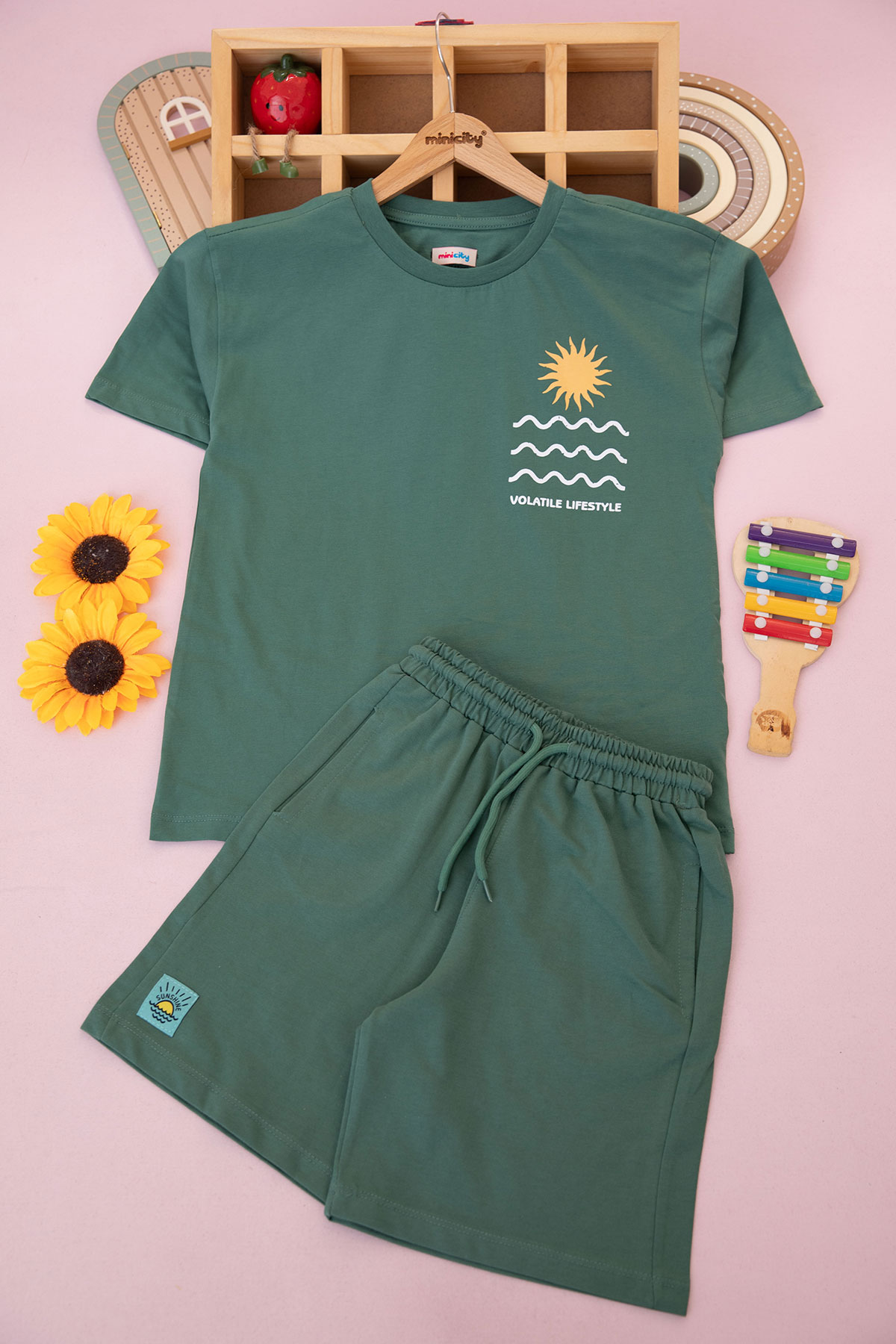 Erkek Çocuk Güneş Baskılı Şortlu Takım - 26265 (11-14 Yaş)