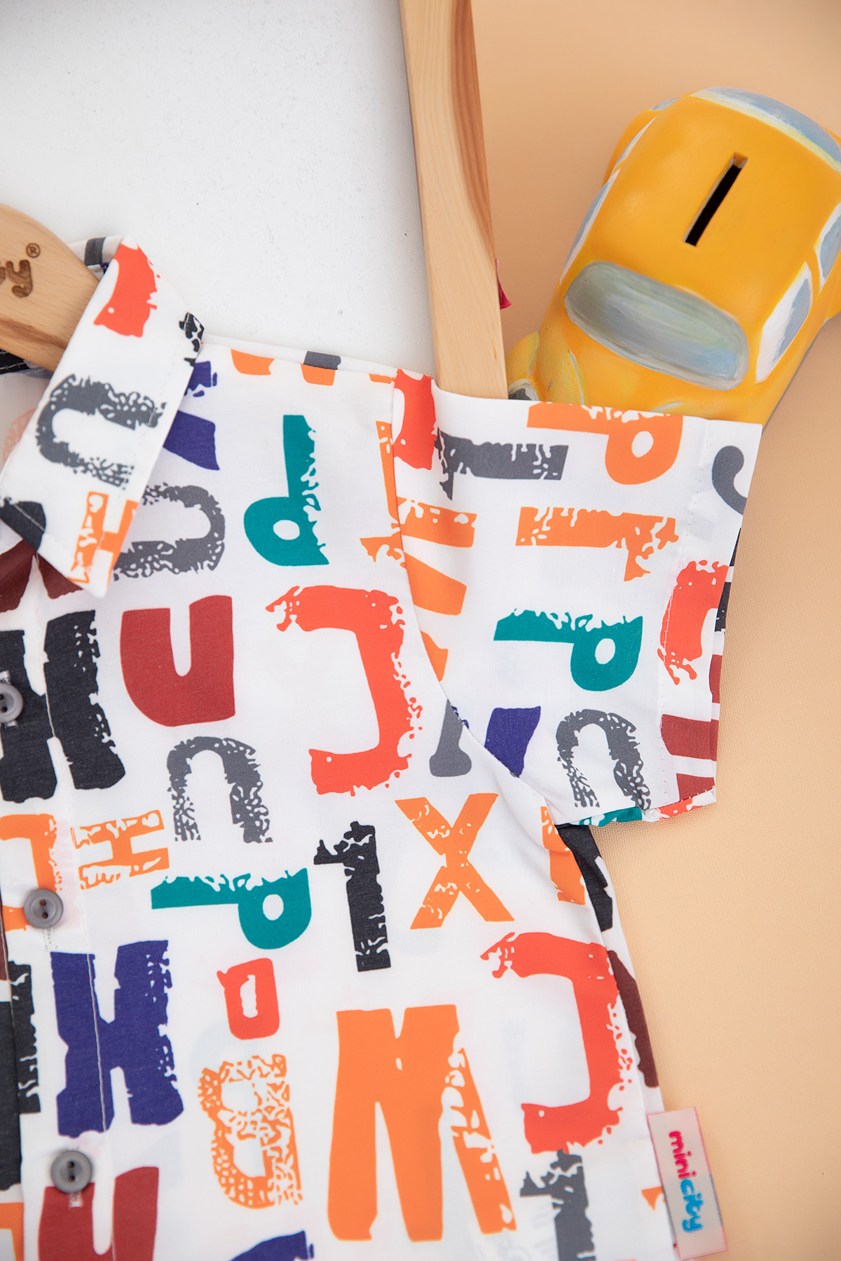 Erkek Çocuk Harf Baskılı Gömlekli Takım - 1401 (2-5 Yaş)