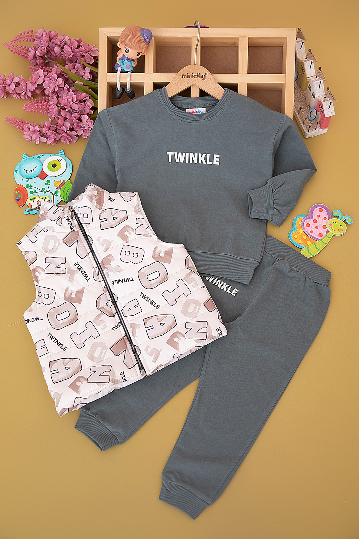 Erkek Çocuk Harf Baskılı Yelekli Takım - 3697 (3-6 Yaş)