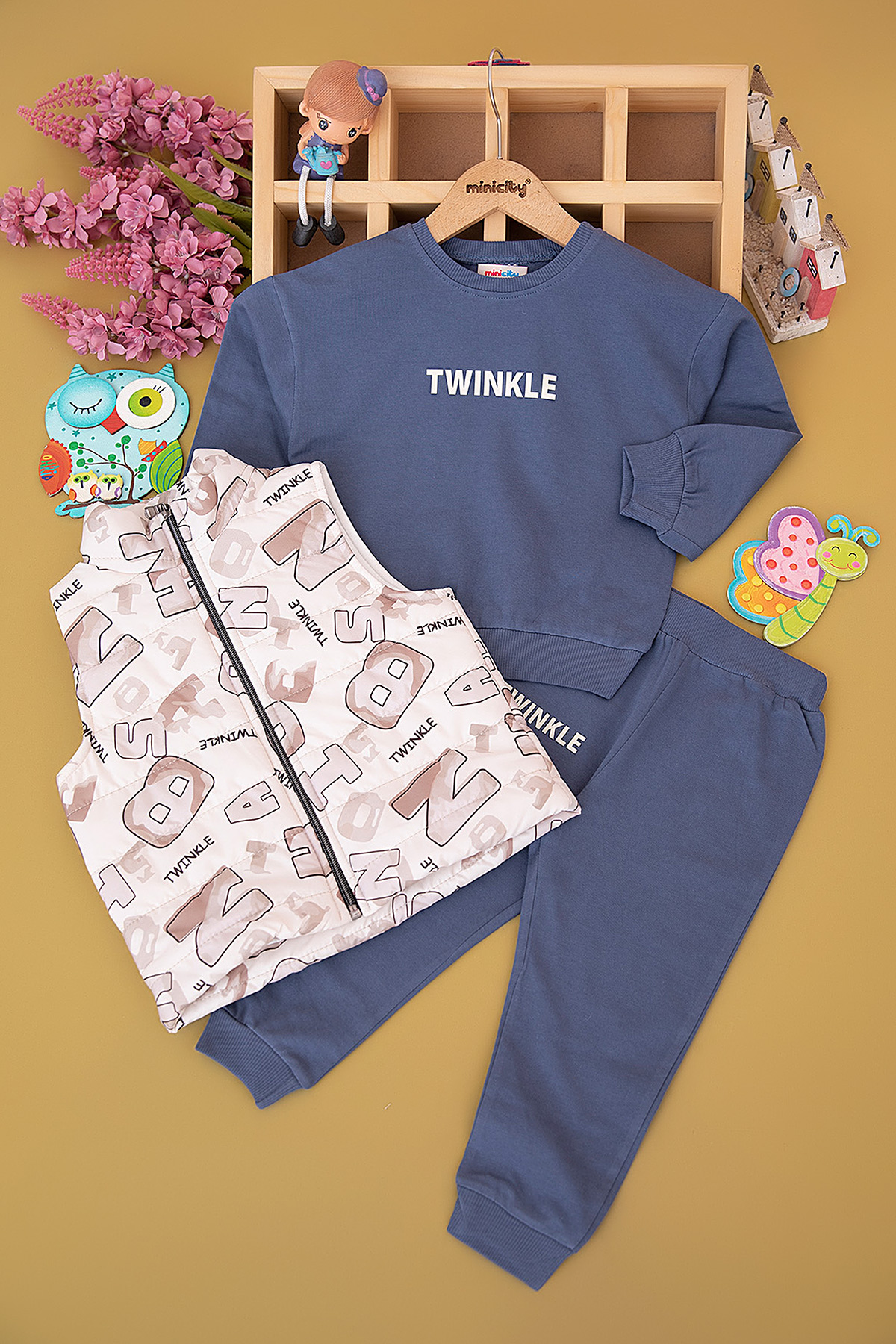 Erkek Çocuk Harf Baskılı Yelekli Takım - 3697 (3-6 Yaş)