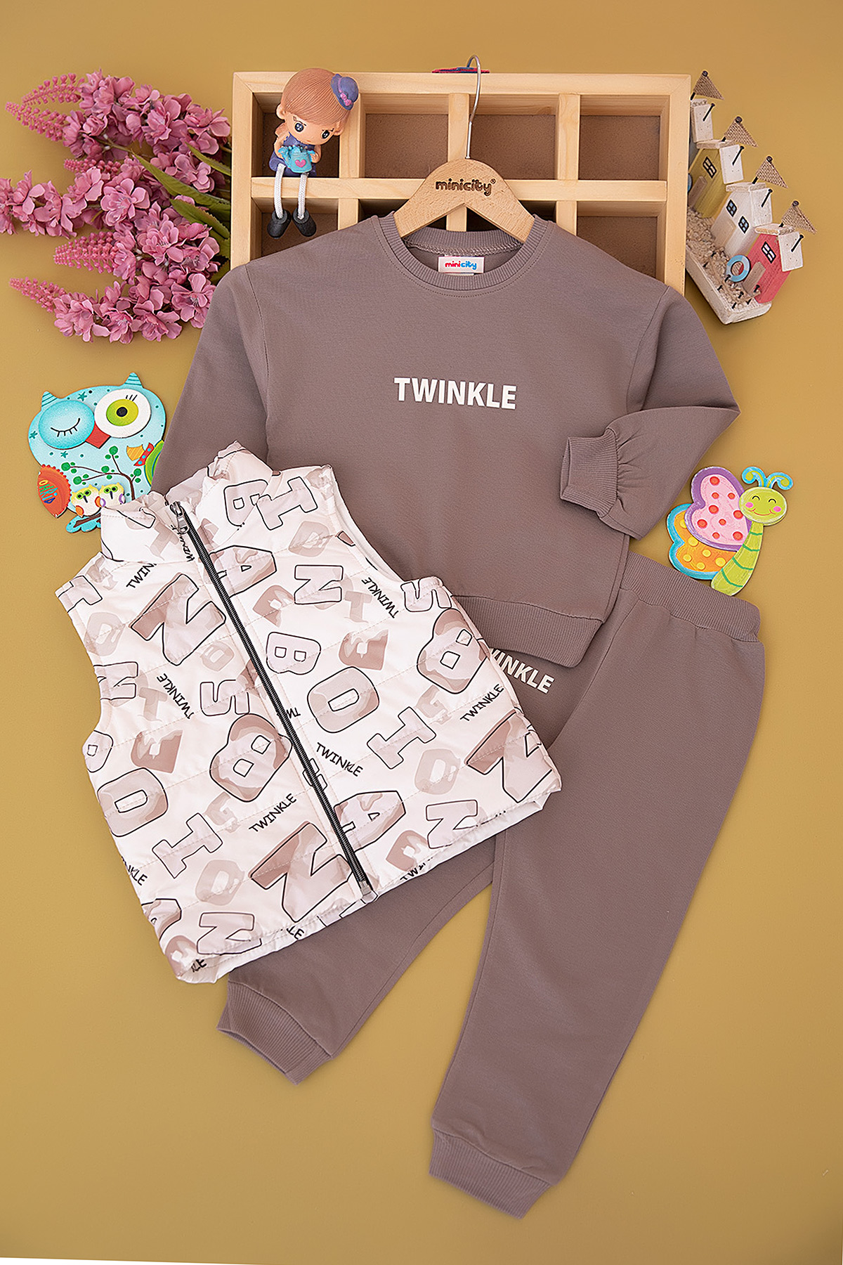 Erkek Çocuk Harf Baskılı Yelekli Takım - 3697 (3-6 Yaş)
