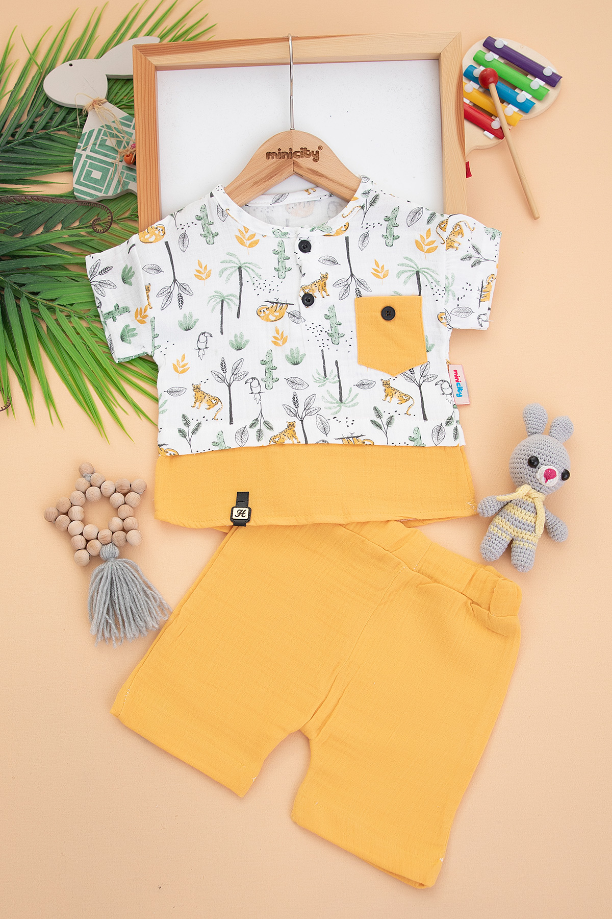 Erkek Çocuk Hayvanlar Baskılı Şortlu Takım - 0449 (1-4 Yaş)