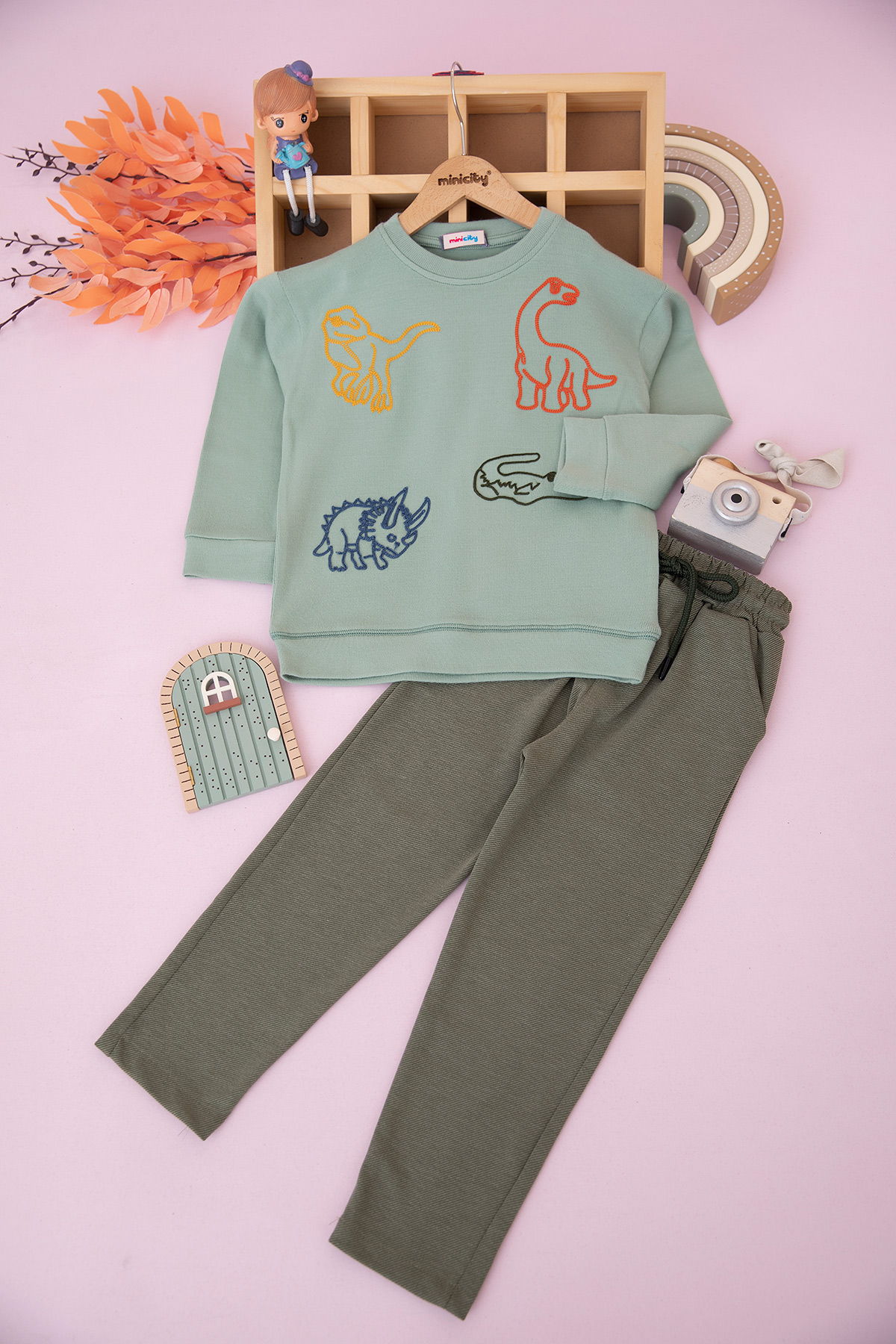 Erkek Çocuk Hayvanlar Nakışlı Takım - 70235 (5-12 Yaş)