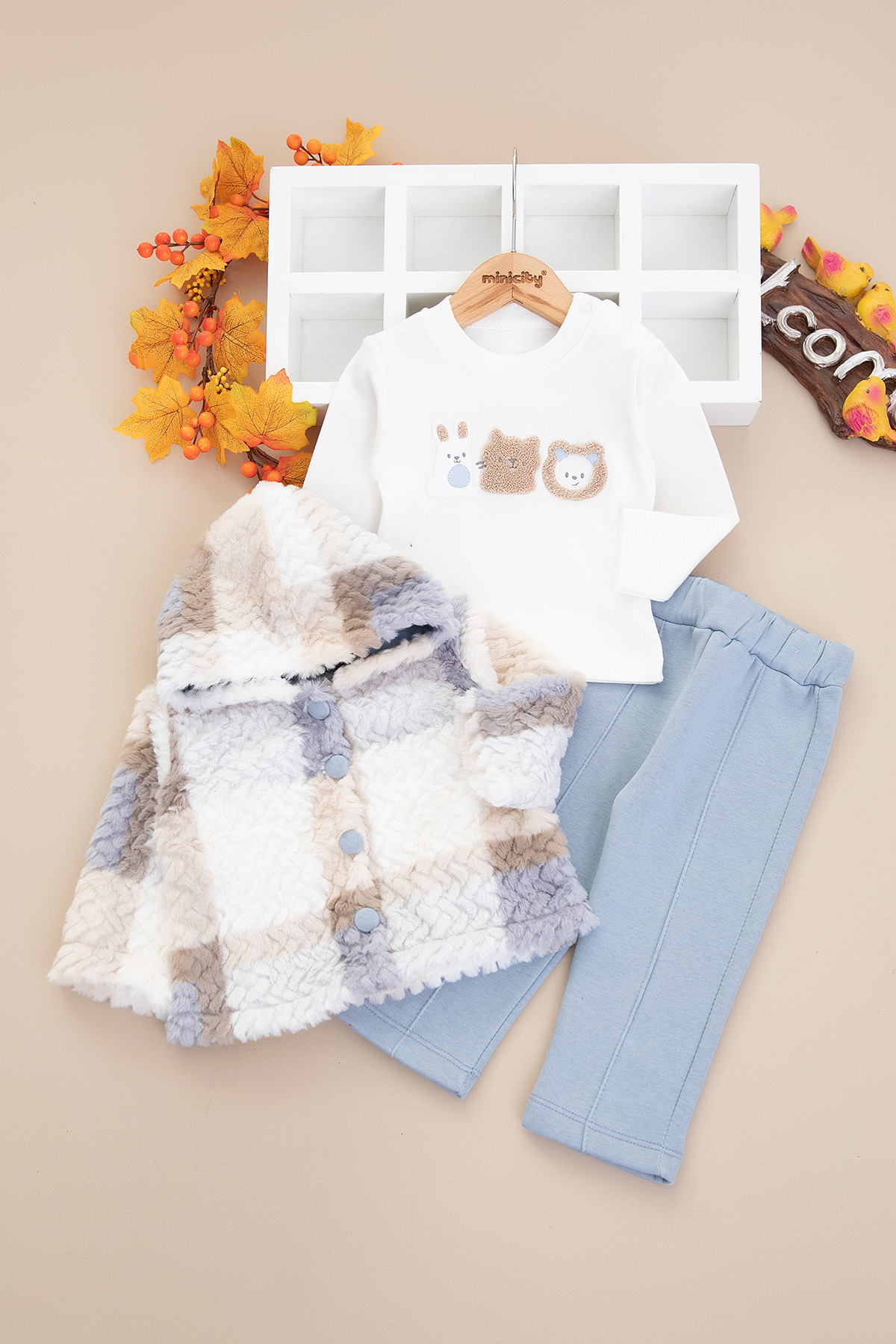 Erkek Çocuk Hayvanlar Peluş Hırkalı Takım - 8415 (1-3 Yaş)