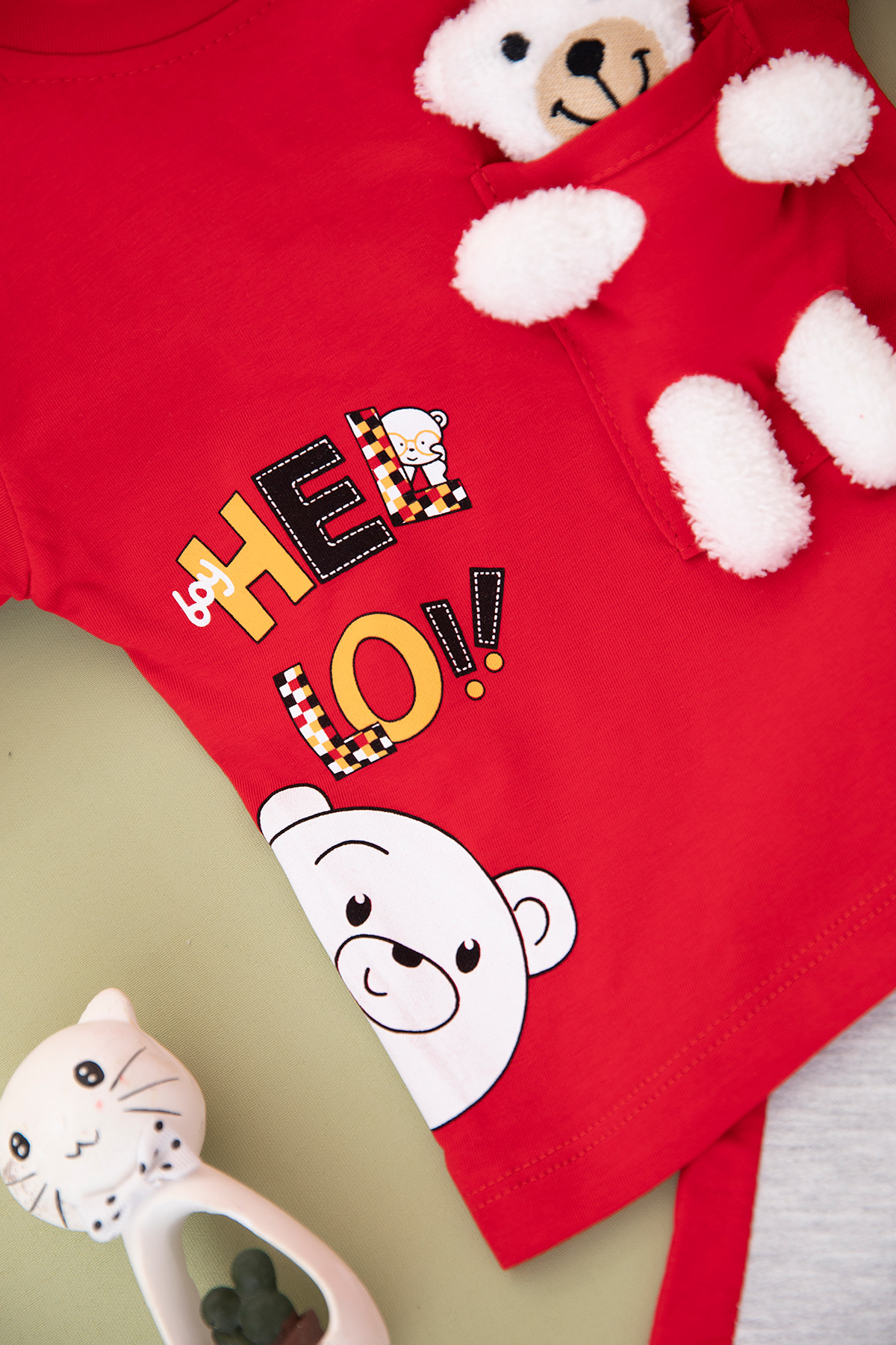 Erkek Çocuk Hello Ayıcıklı Şortlu Takım - 3016 (1-3 Yaş)