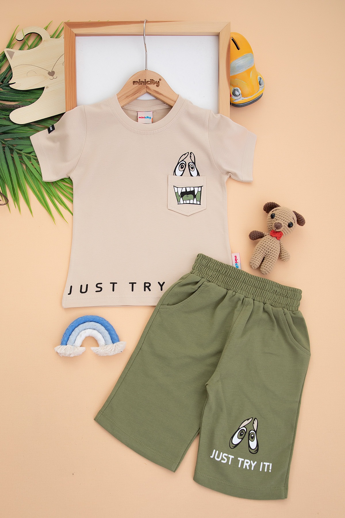 Erkek Çocuk Just Try İt Baskılı Kaprili Takım - M-1078 (2-5 Yaş)