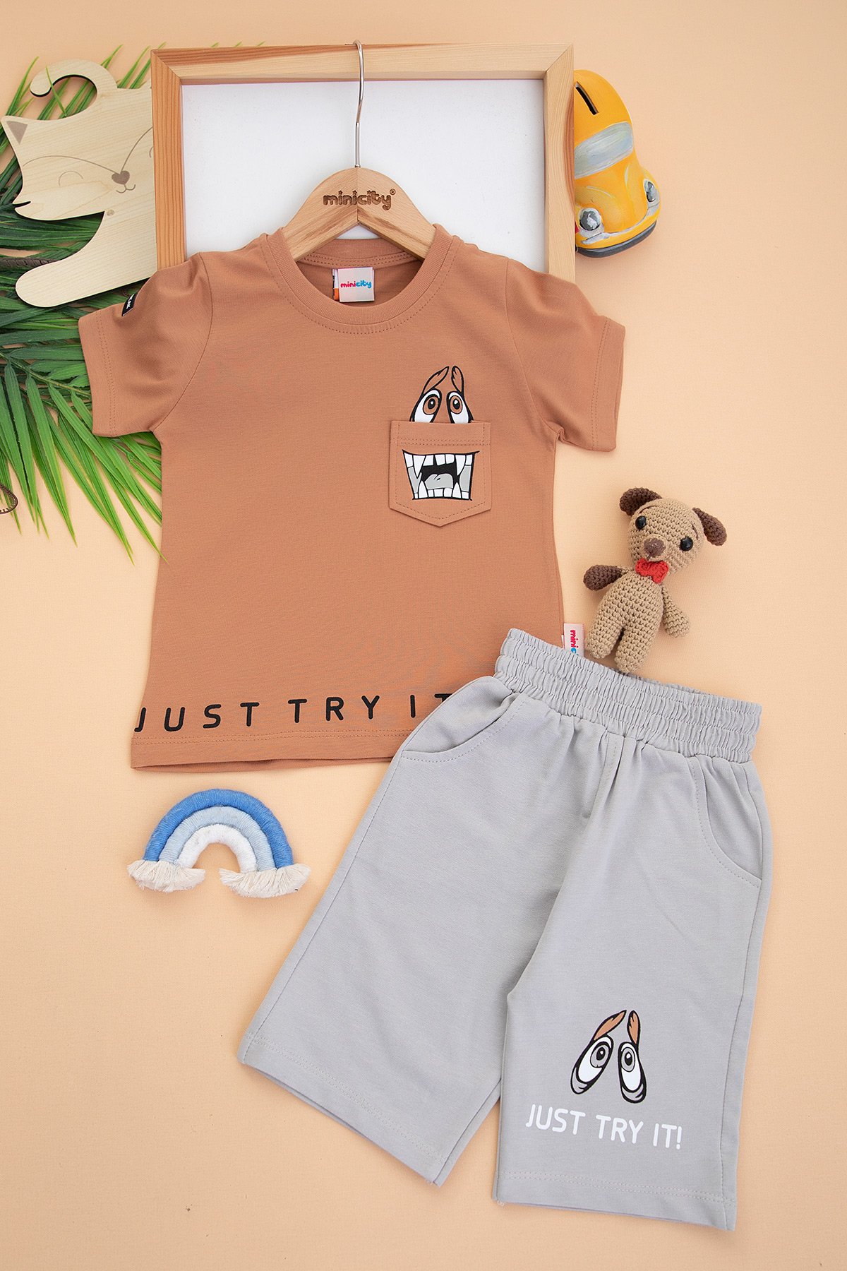 Erkek Çocuk Just Try İt Baskılı Kaprili Takım - M-1078 (2-5 Yaş)