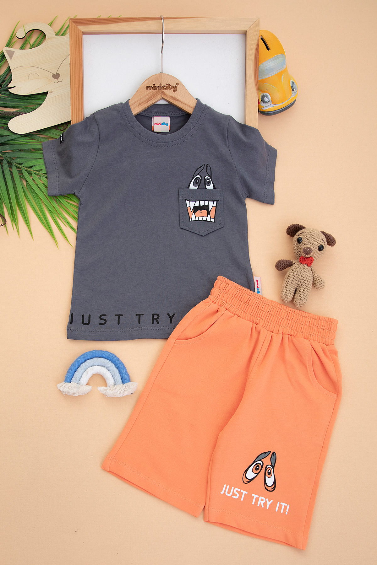 Erkek Çocuk Just Try İt Baskılı Kaprili Takım - M-2078 (6-9 Yaş)