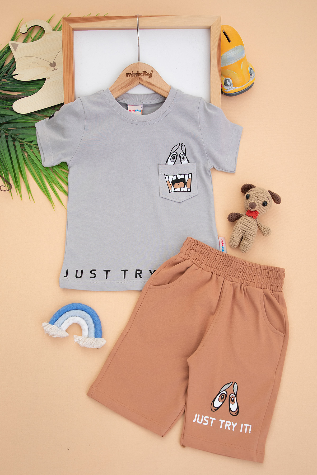 Erkek Çocuk Just Try İt Baskılı Kaprili Takım - M-2078 (6-9 Yaş)