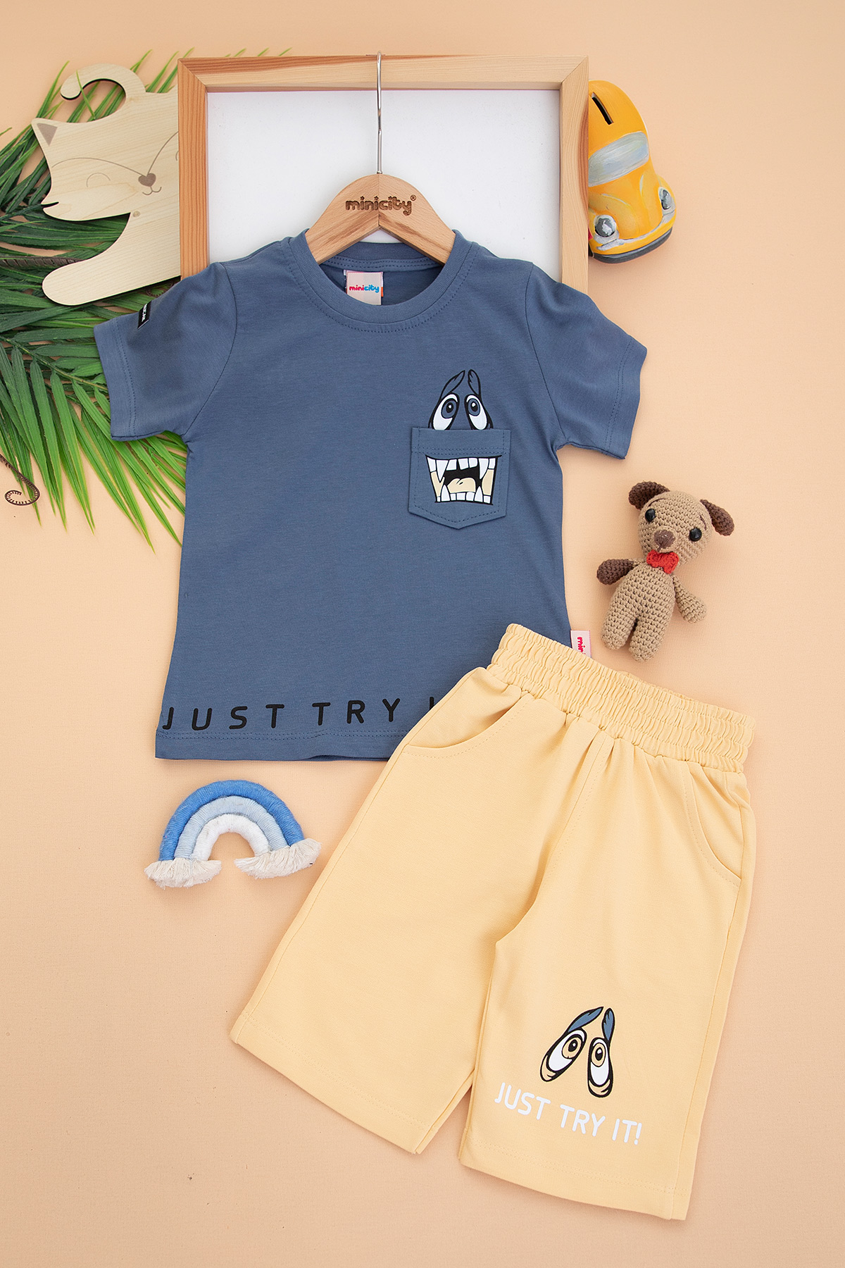 Erkek Çocuk Just Try İt Baskılı Kaprili Takım - M-2078 (6-9 Yaş)