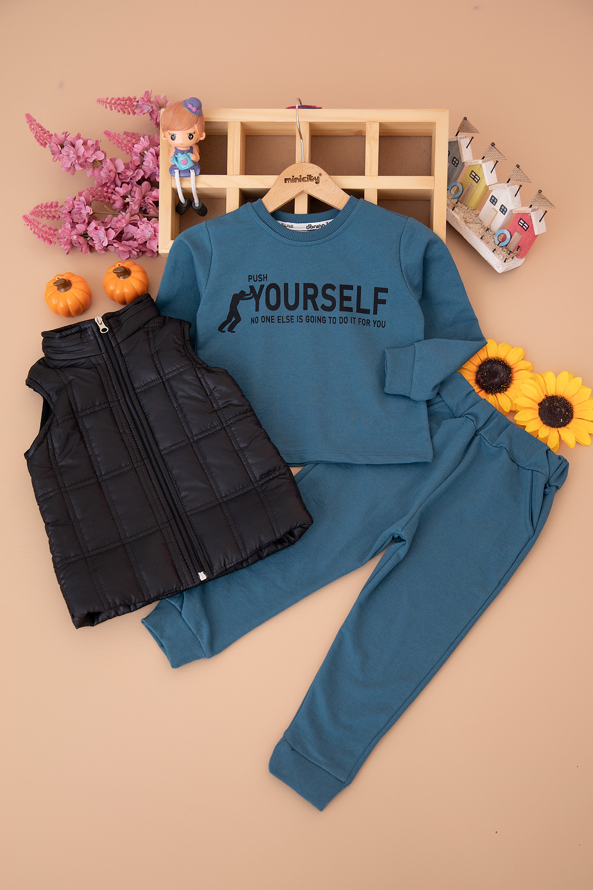 Erkek Çocuk Kare Kapitone Yelekli Takım - 50440 (2-5 Yaş)