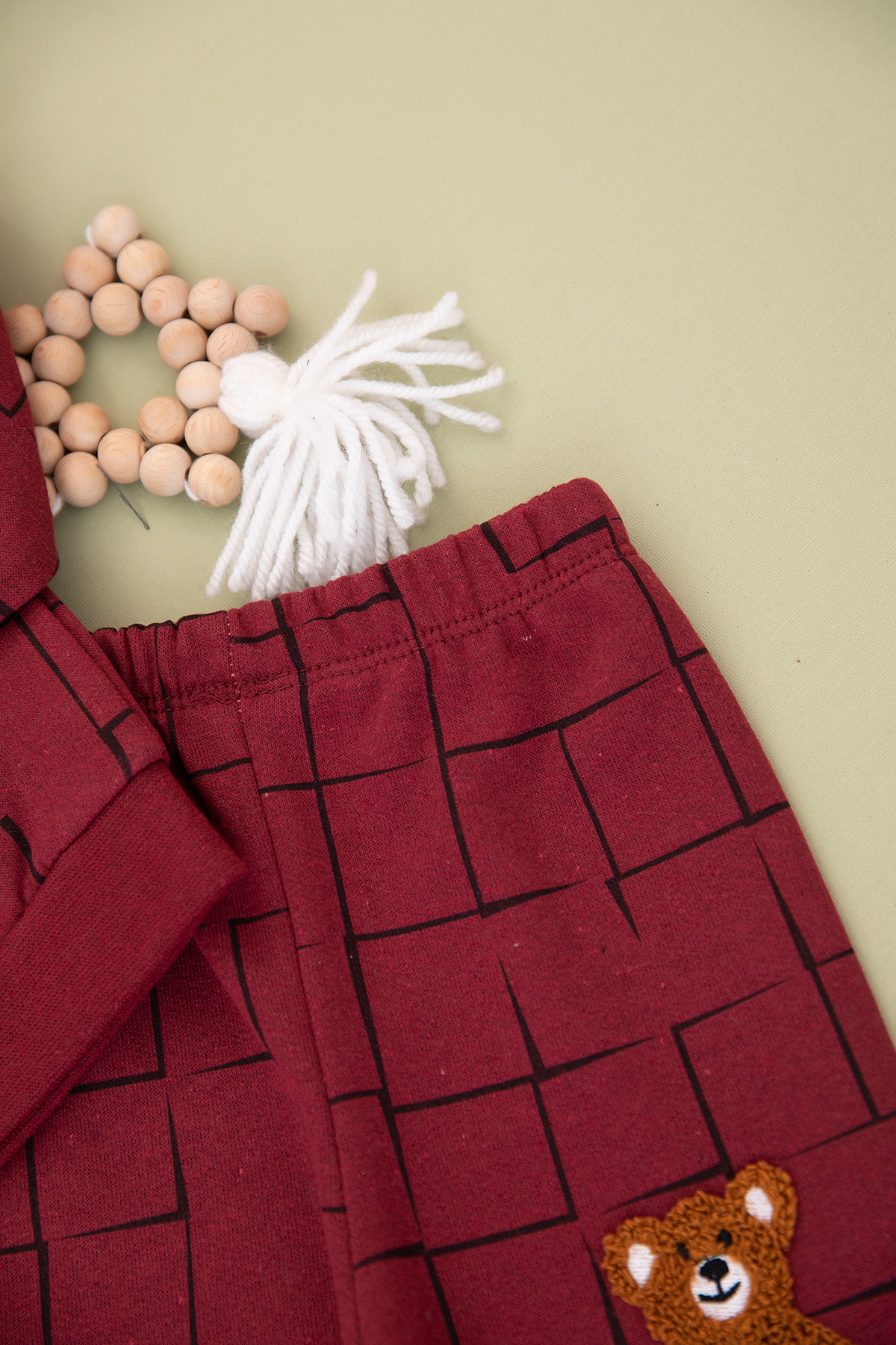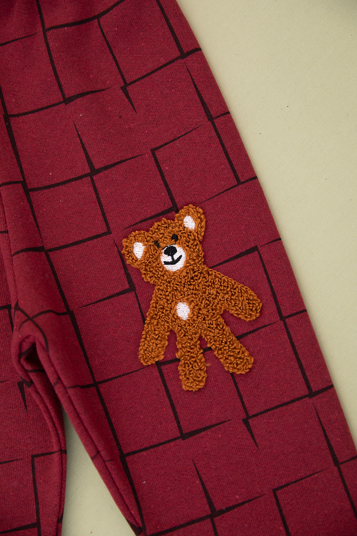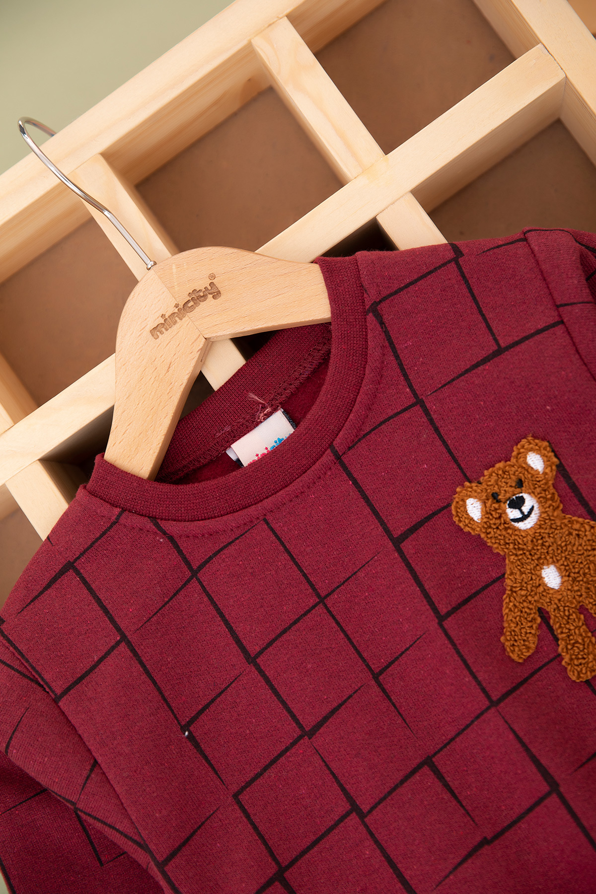 Erkek Çocuk Kareli Çizgili Ayıcıklı Şardonlu Takım (2-5 Yaş)