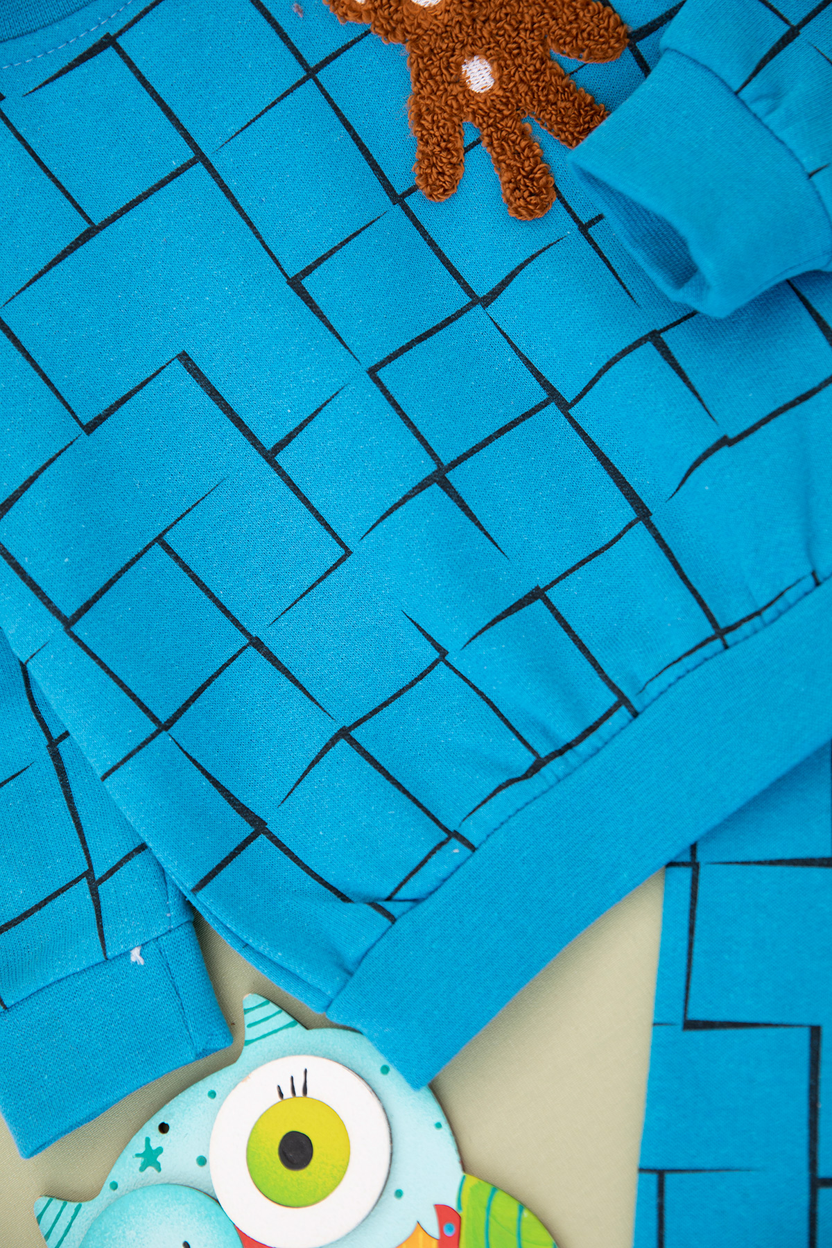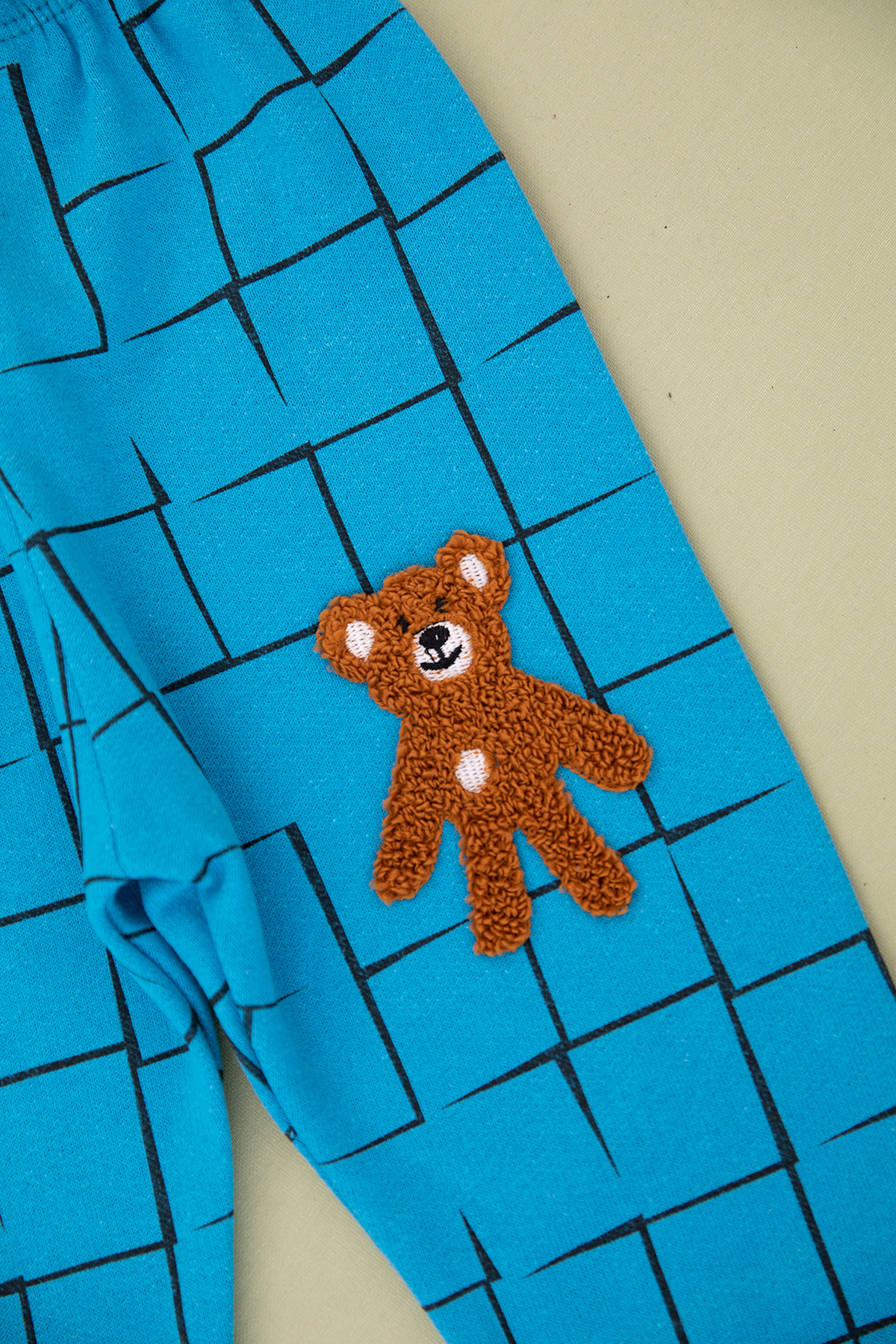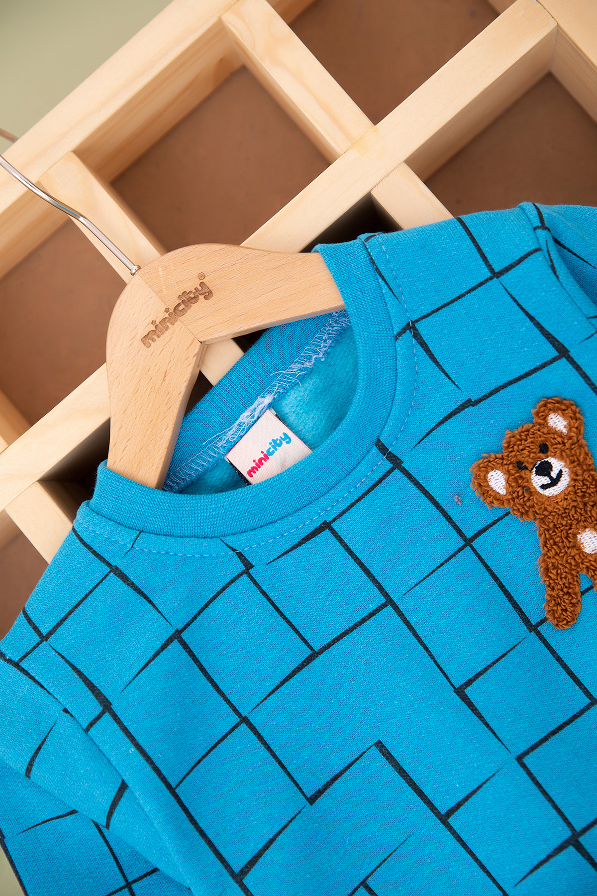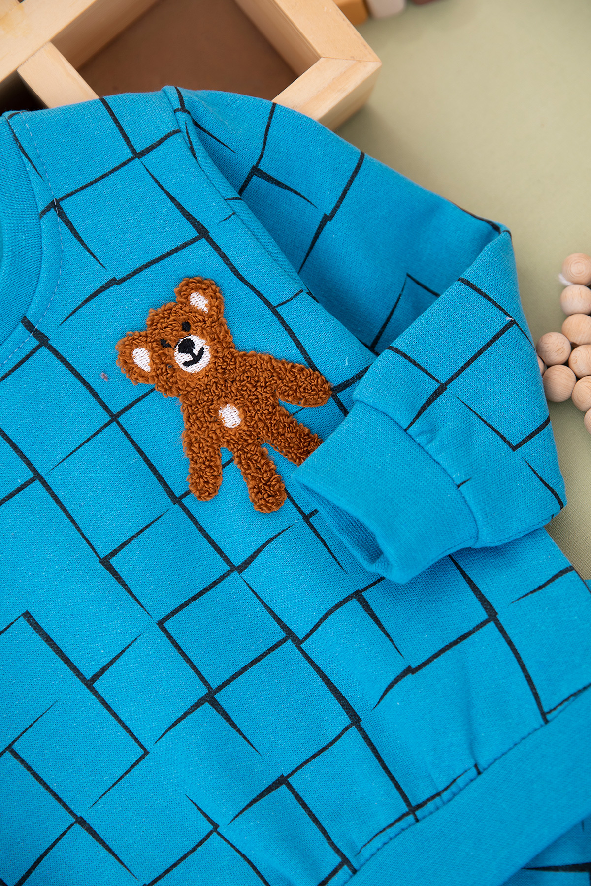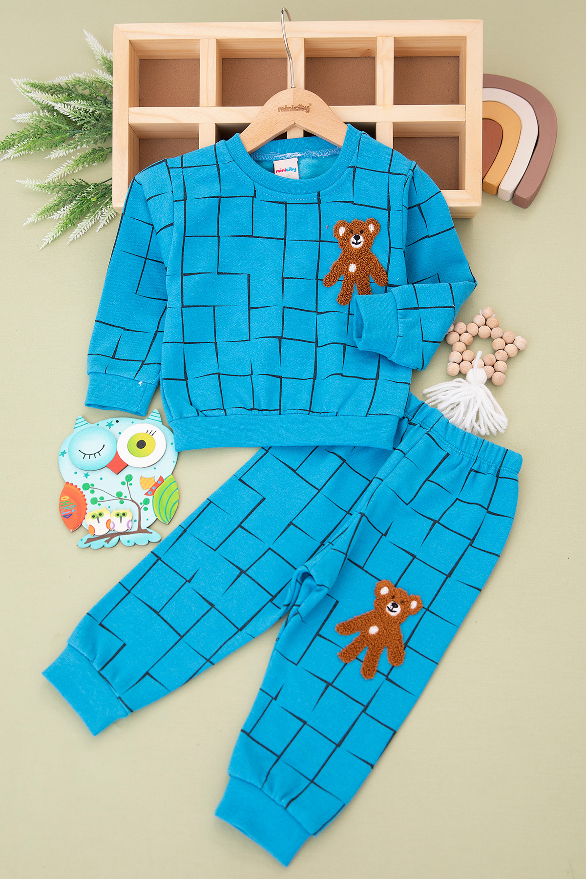 Erkek Çocuk Kareli Çizgili Ayıcıklı Şardonlu Takım (2-5 Yaş)