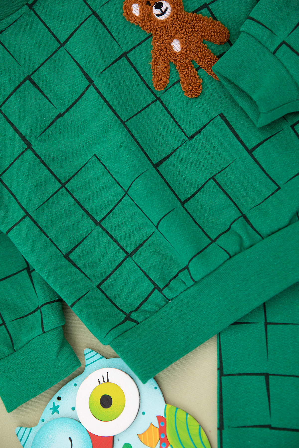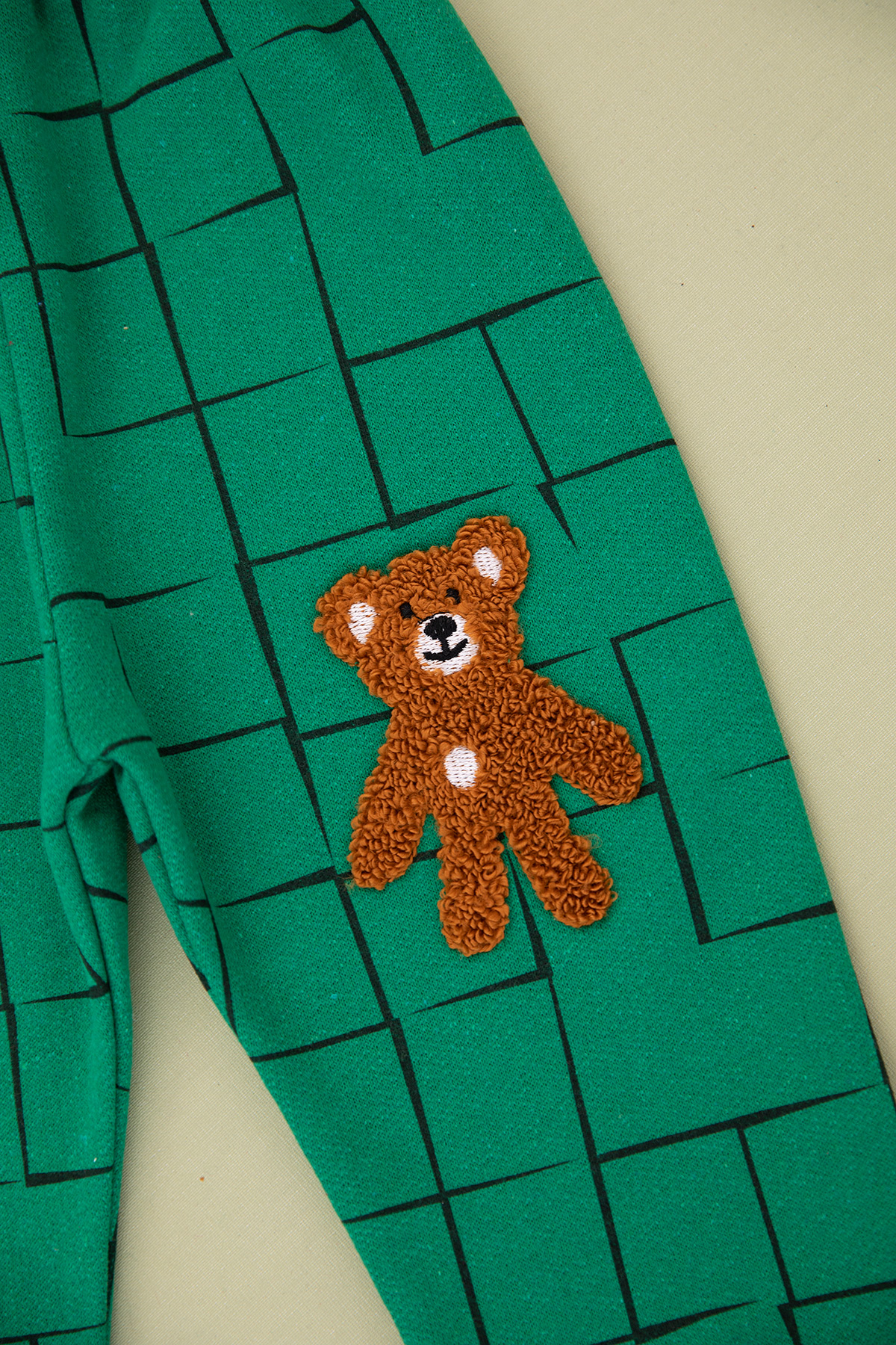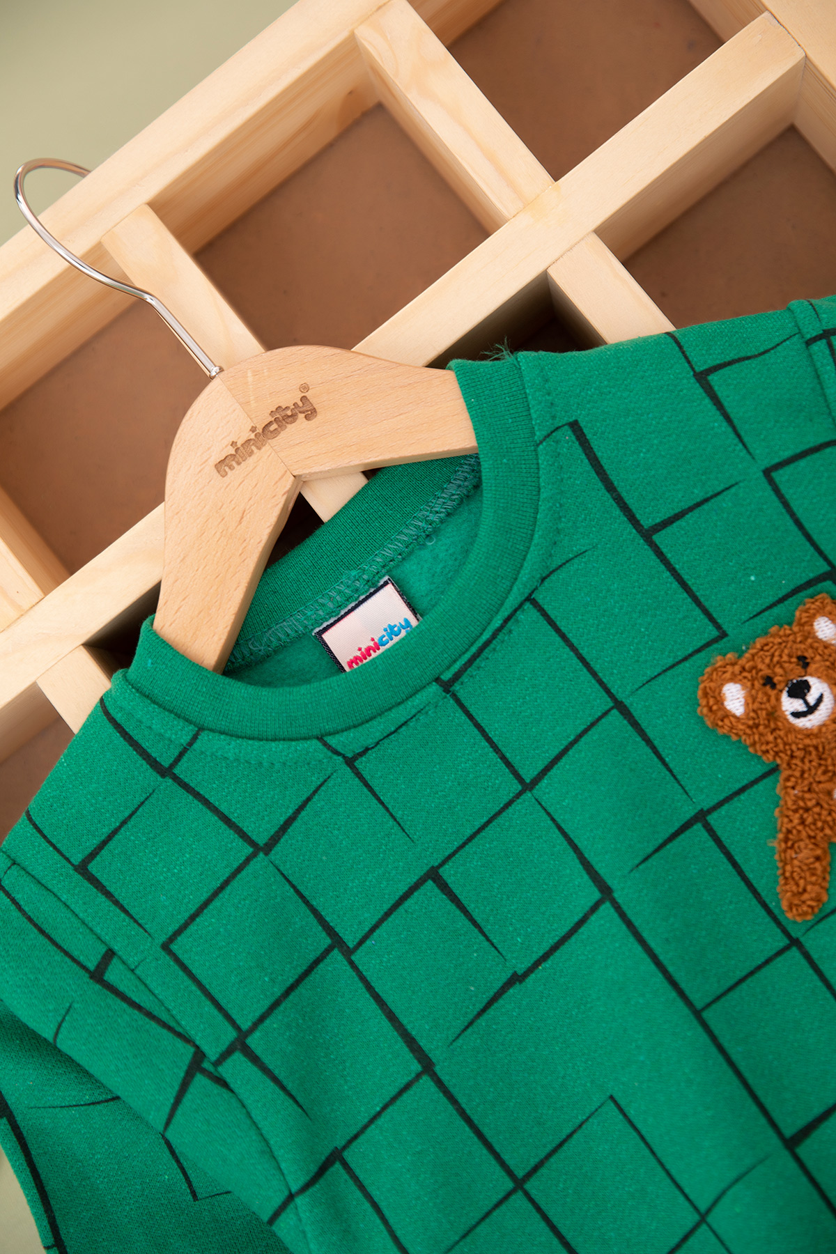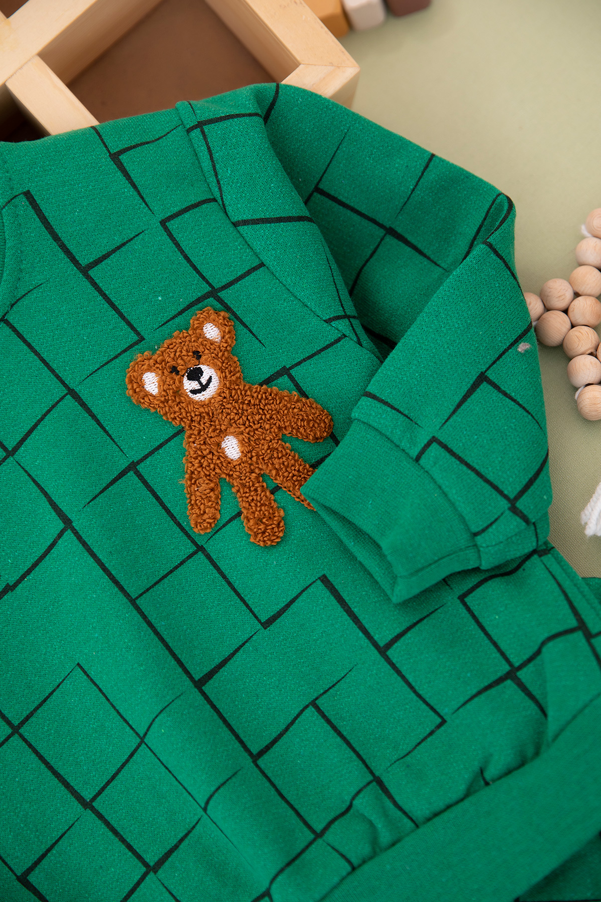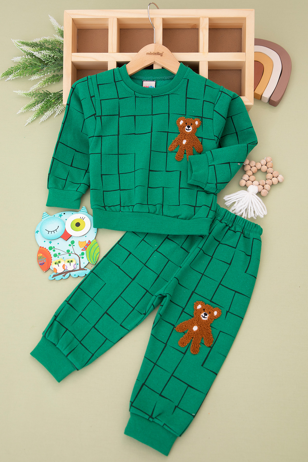 Erkek Çocuk Kareli Çizgili Ayıcıklı Şardonlu Takım (2-5 Yaş)