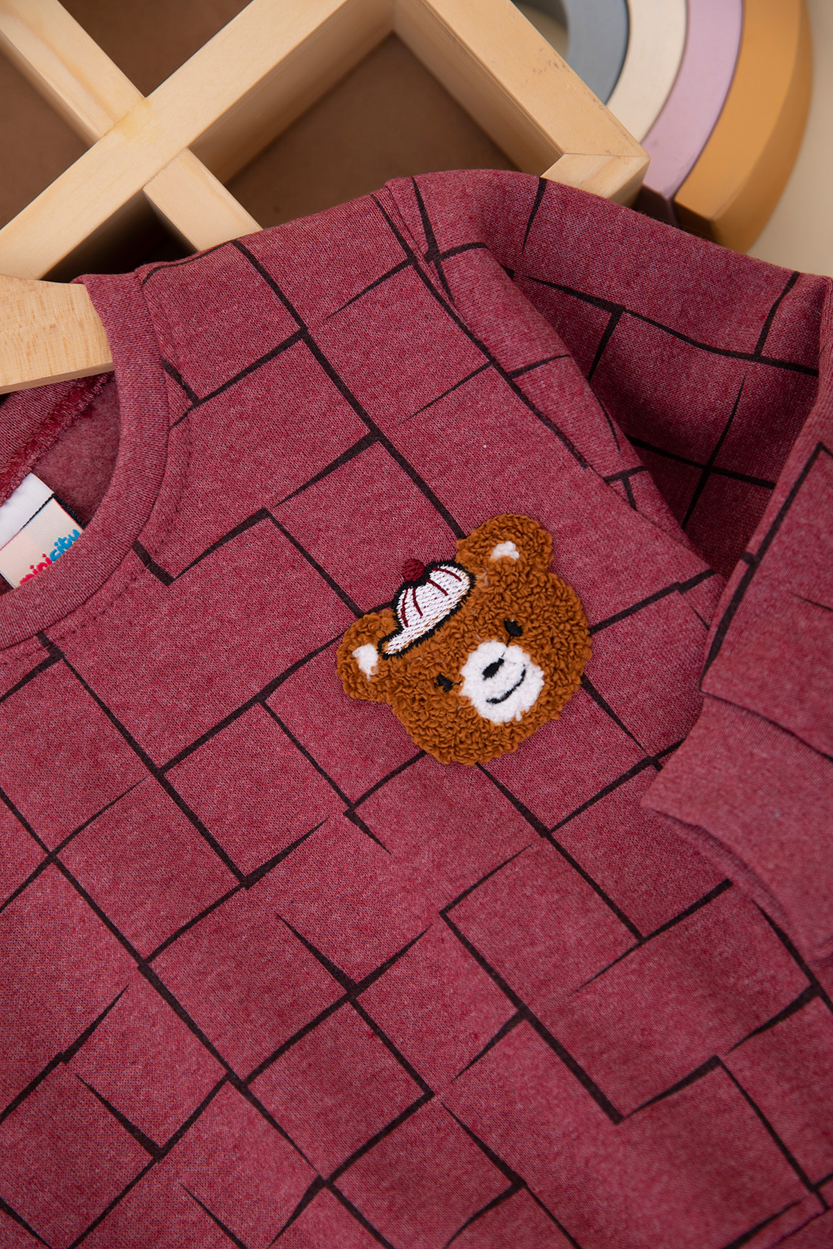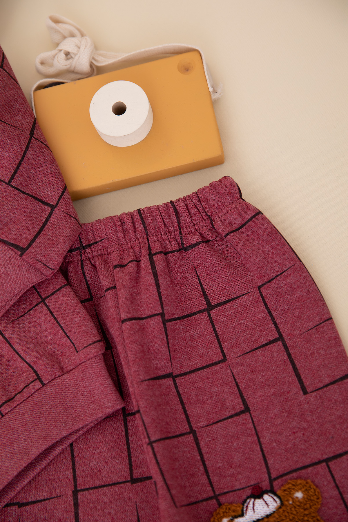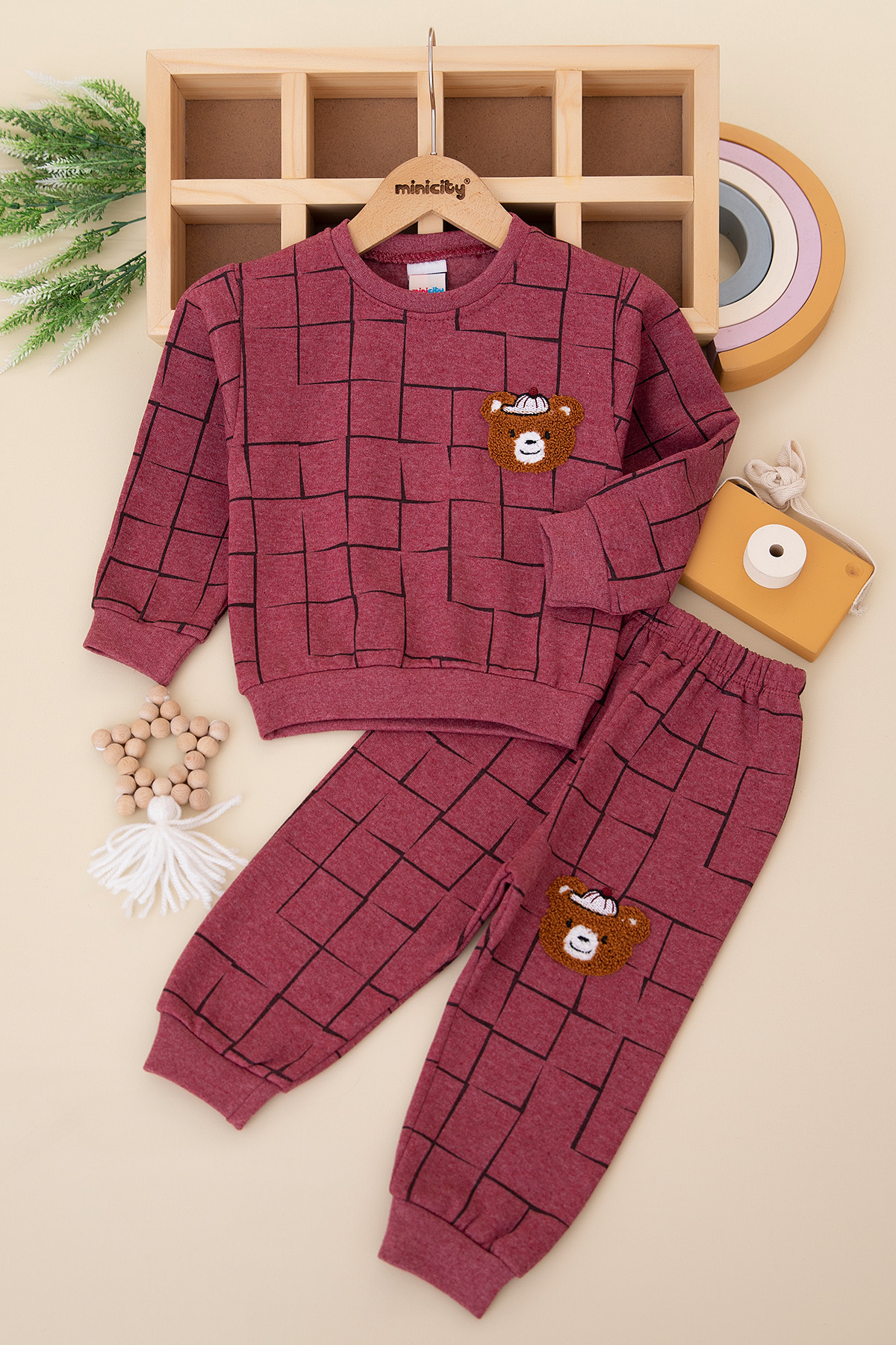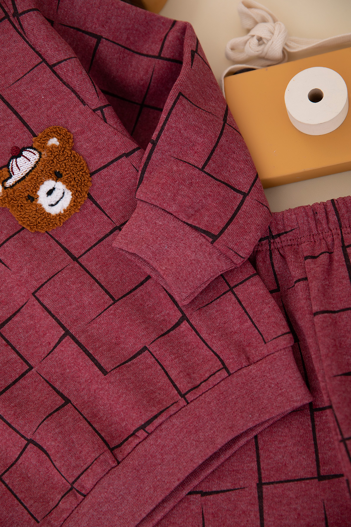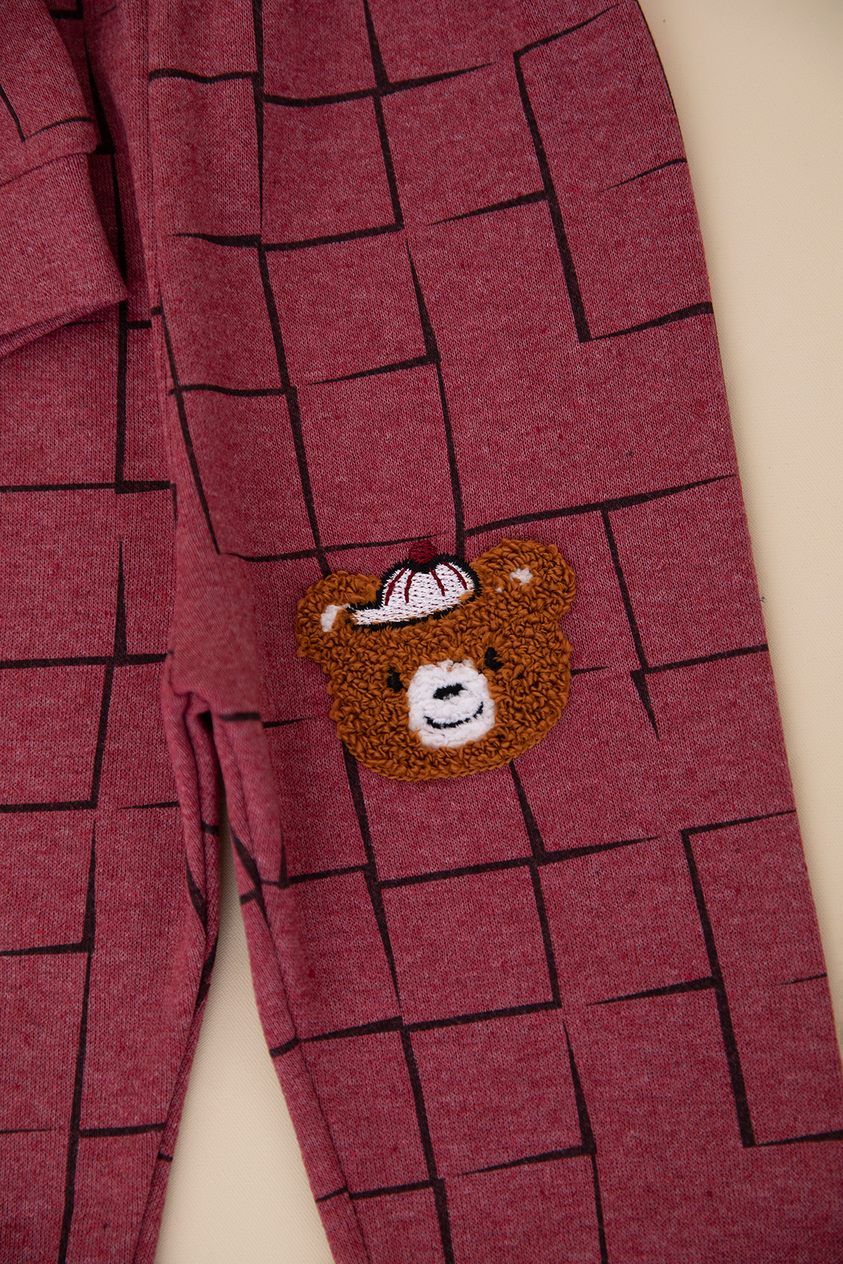Erkek Çocuk Kareli Çizgili Ayıcıklı Şardonlu Takım (2-5 Yaş)