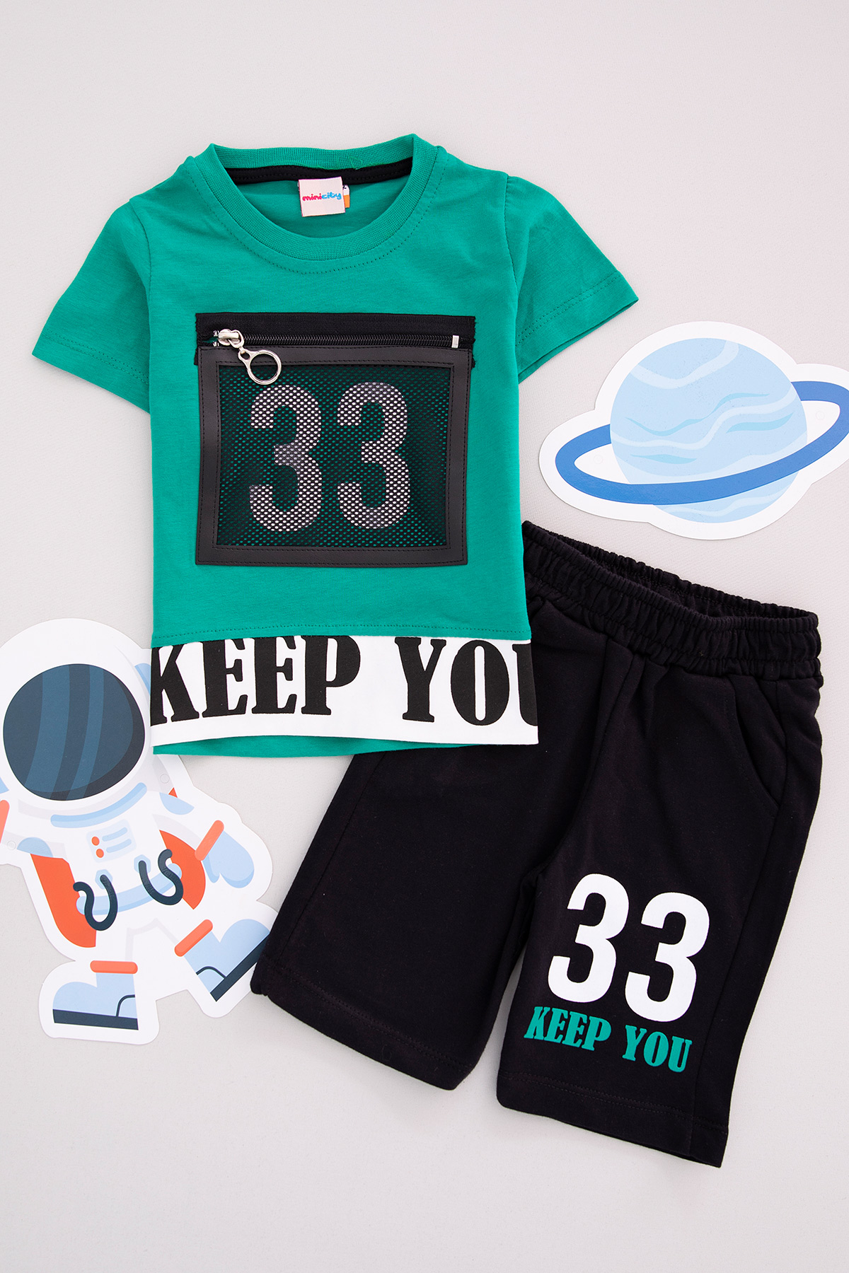 Erkek Çocuk Keep You Baskılı Şortlu Takım - M-329 (1-4 Yaş)